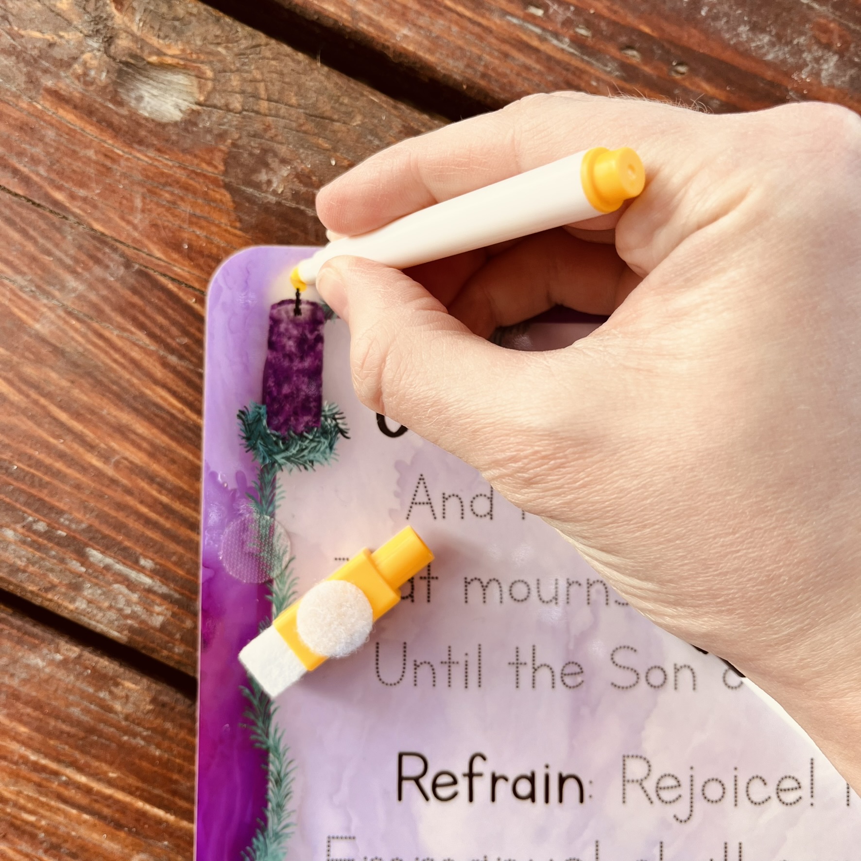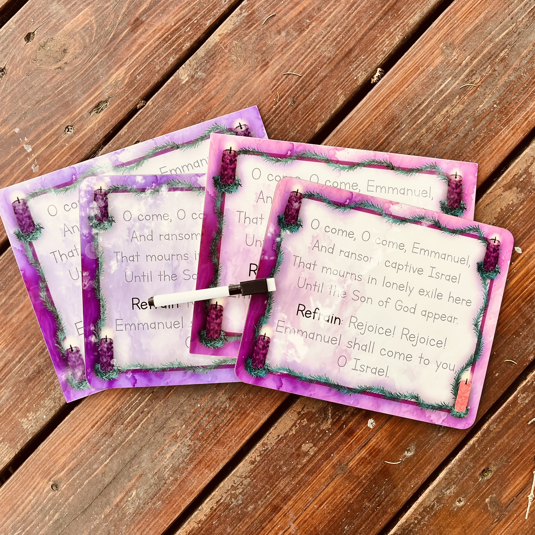 Choose from a single board with the first verse and refrain or various bundle options to have the whole hymn! Use the included yellow dry-erase marker to “light” the candle(s) corresponding to the week in Advent.