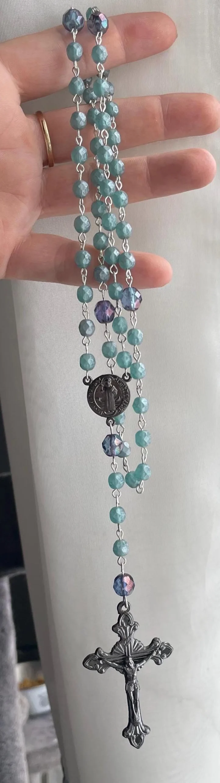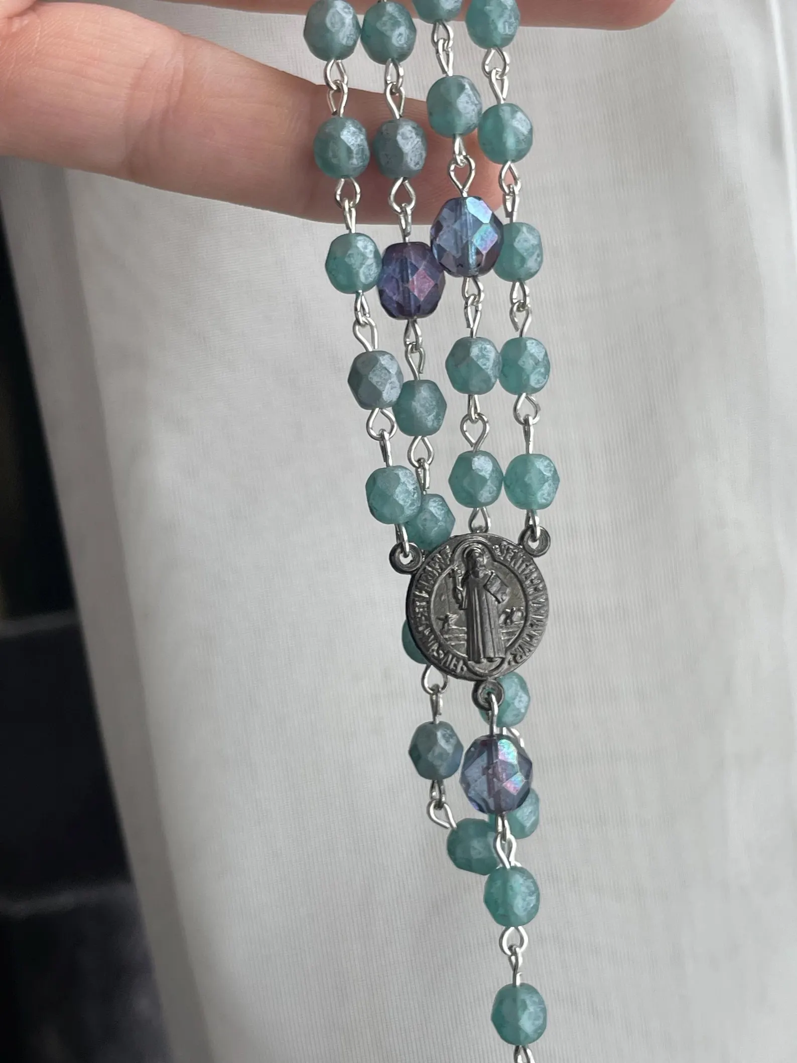 Blue Frosted Czech Glass Handmade Rosary – St. Agatha