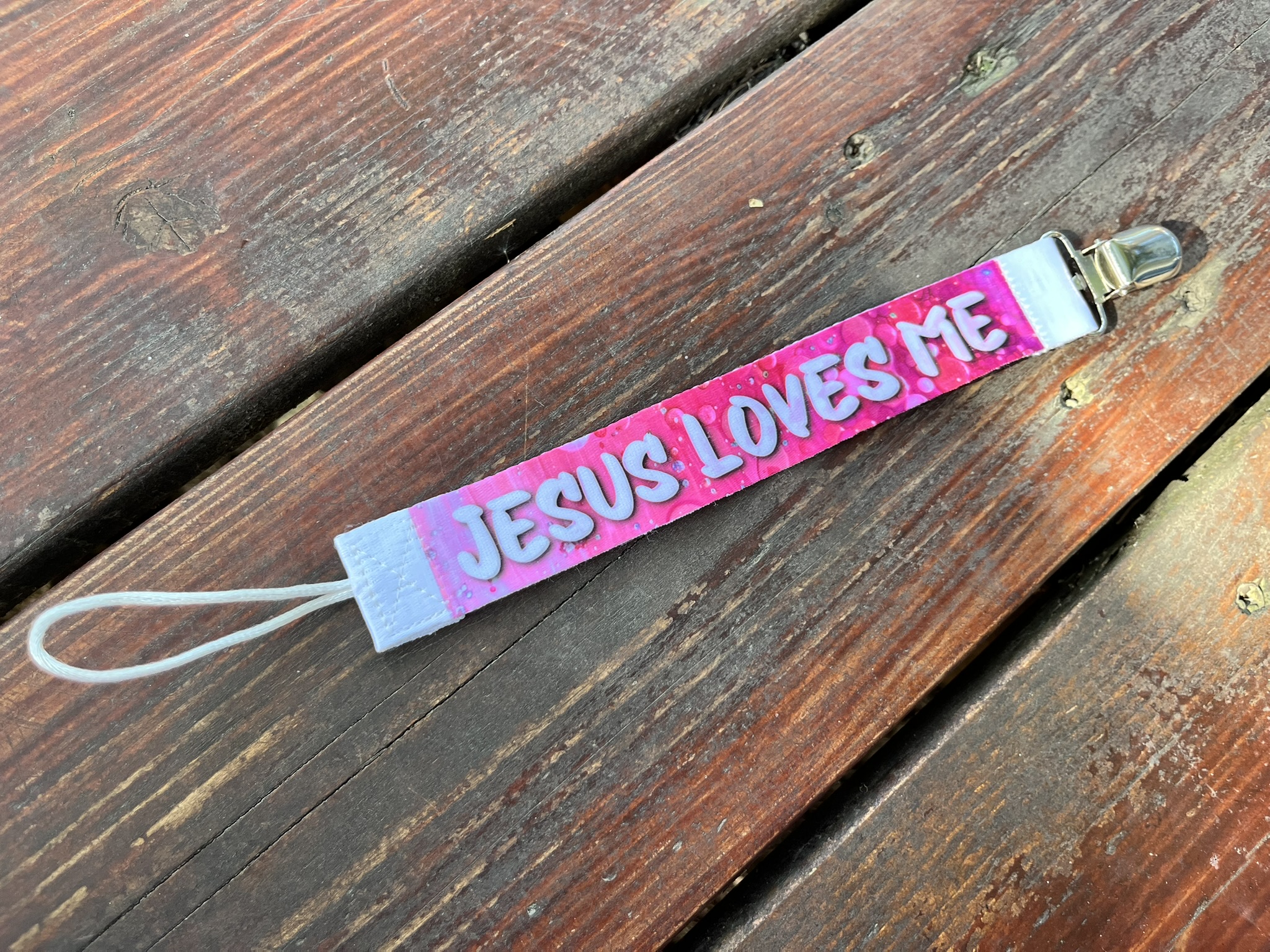 Fun, faith-inspired loop clips for pacifiers, snack cups, or handled bottles!