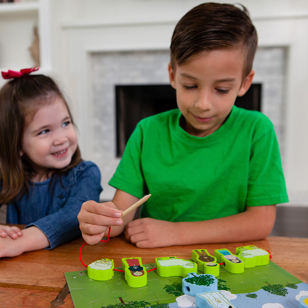 Invite Mary and the saints to your next playtime! This wooden lacing set is great for natural play that introduces and develops the fine motor skills necessary for healthy brain development while encouraging children to explore the story of Our Lady of Fatima.