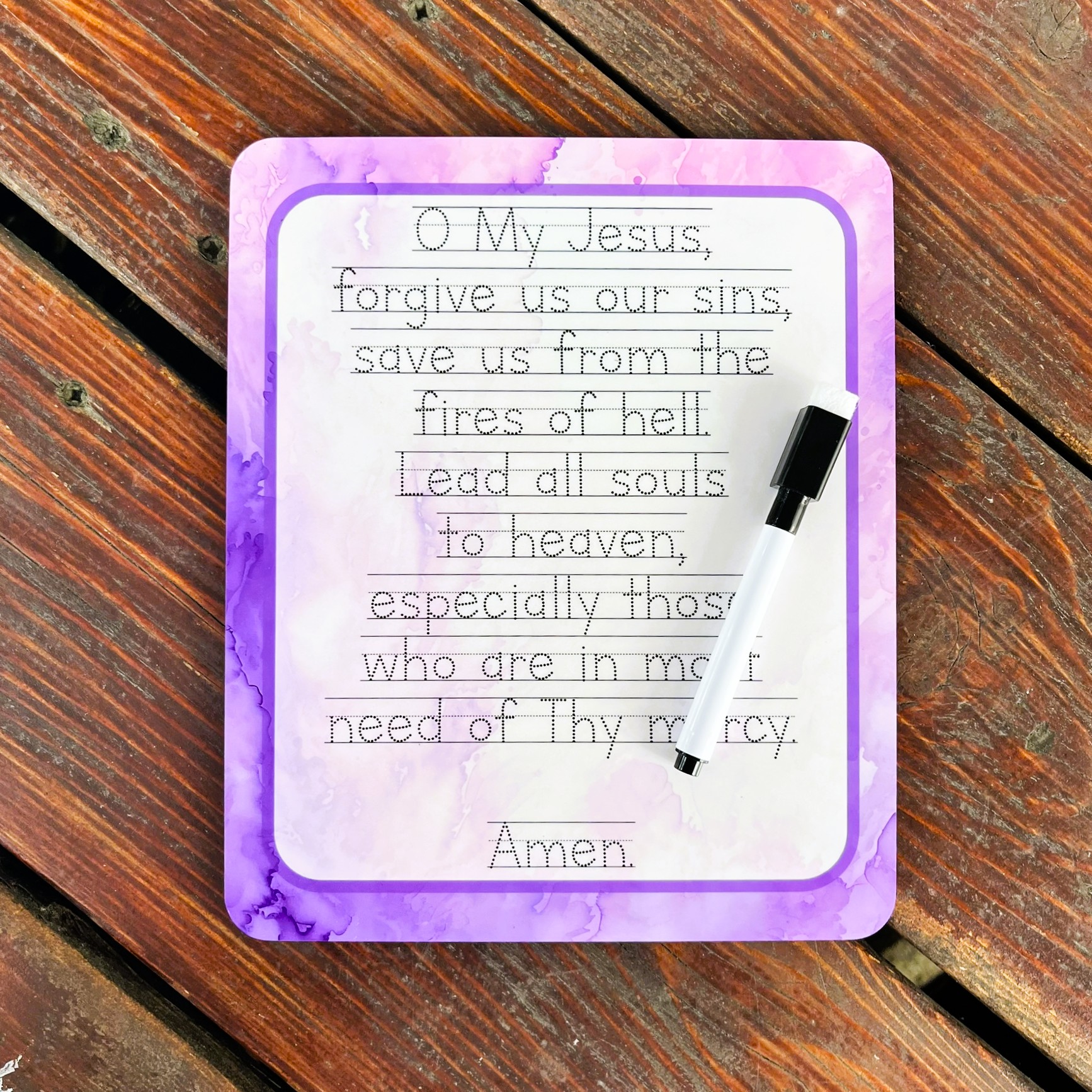 Fatima Rosary Prayer Customizable Hardboard Tracing Practice – Dry-Erase Board