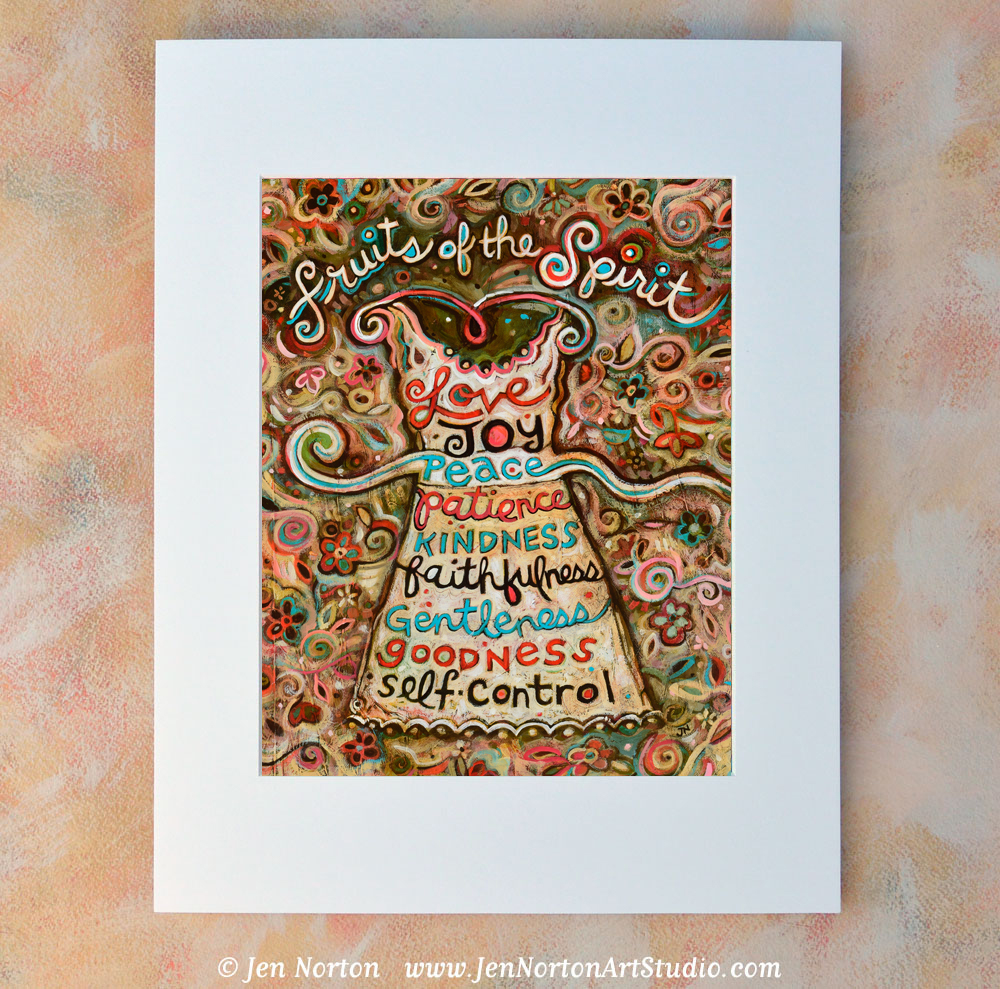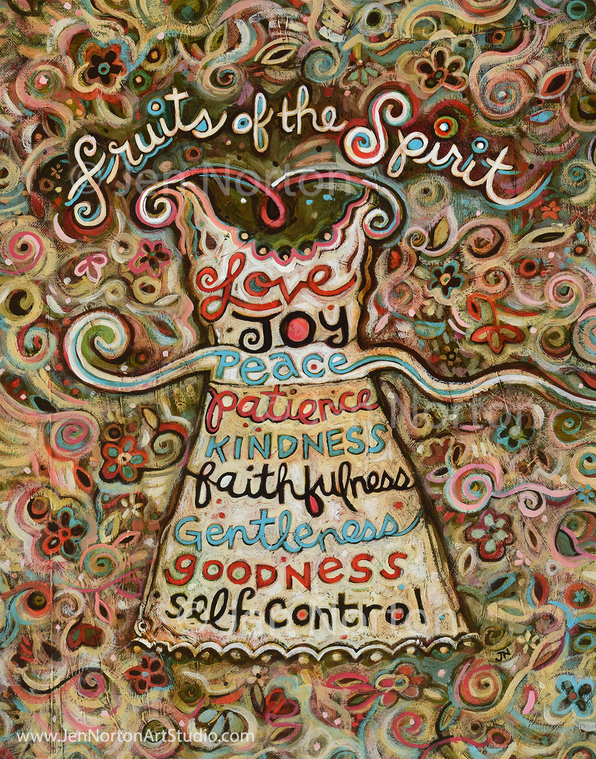 I have a slightly different version of this piece, with many print options, in my Pixels shop here: https://jen-norton.pixels.com/featured/fruits-of-the-spirit-jen-norton.html