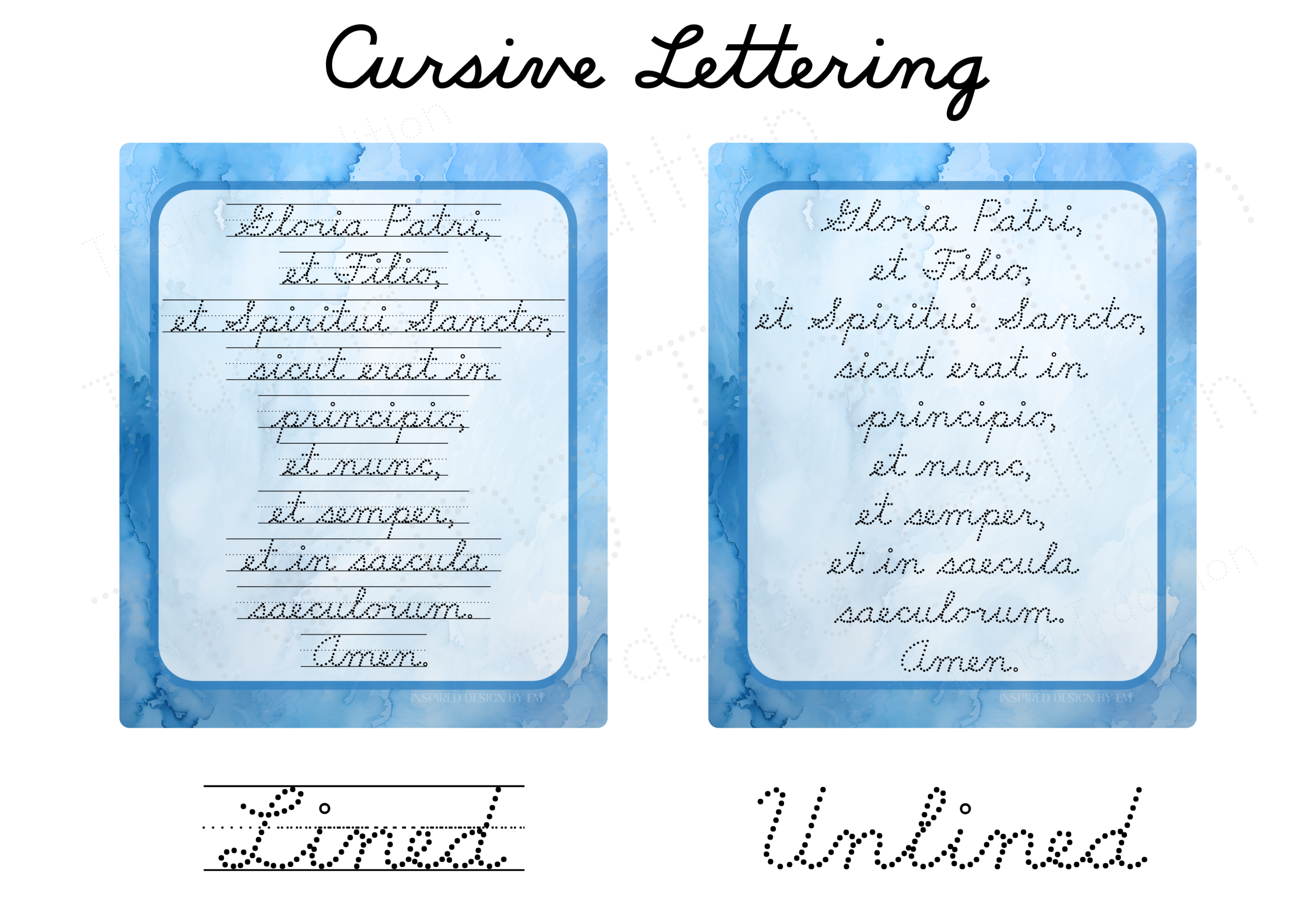 Help your children learn or pray through the Glory Be in Latin while practicing their print or cursive lettering!