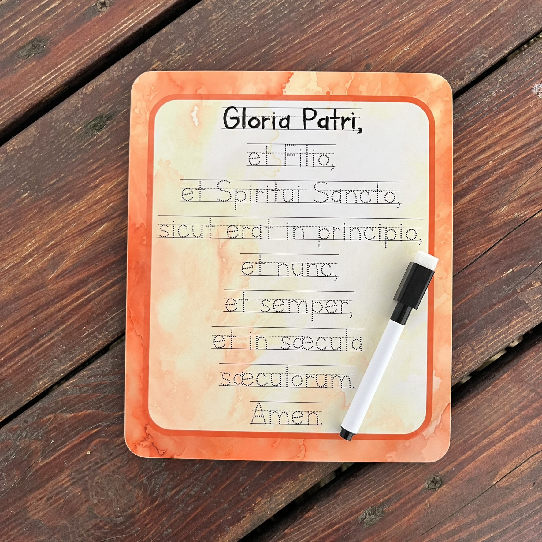 Gloria Patri (Latin) – Reusable Writing Practice Dry-Erase Board – Great for Catholic Homeschoolers