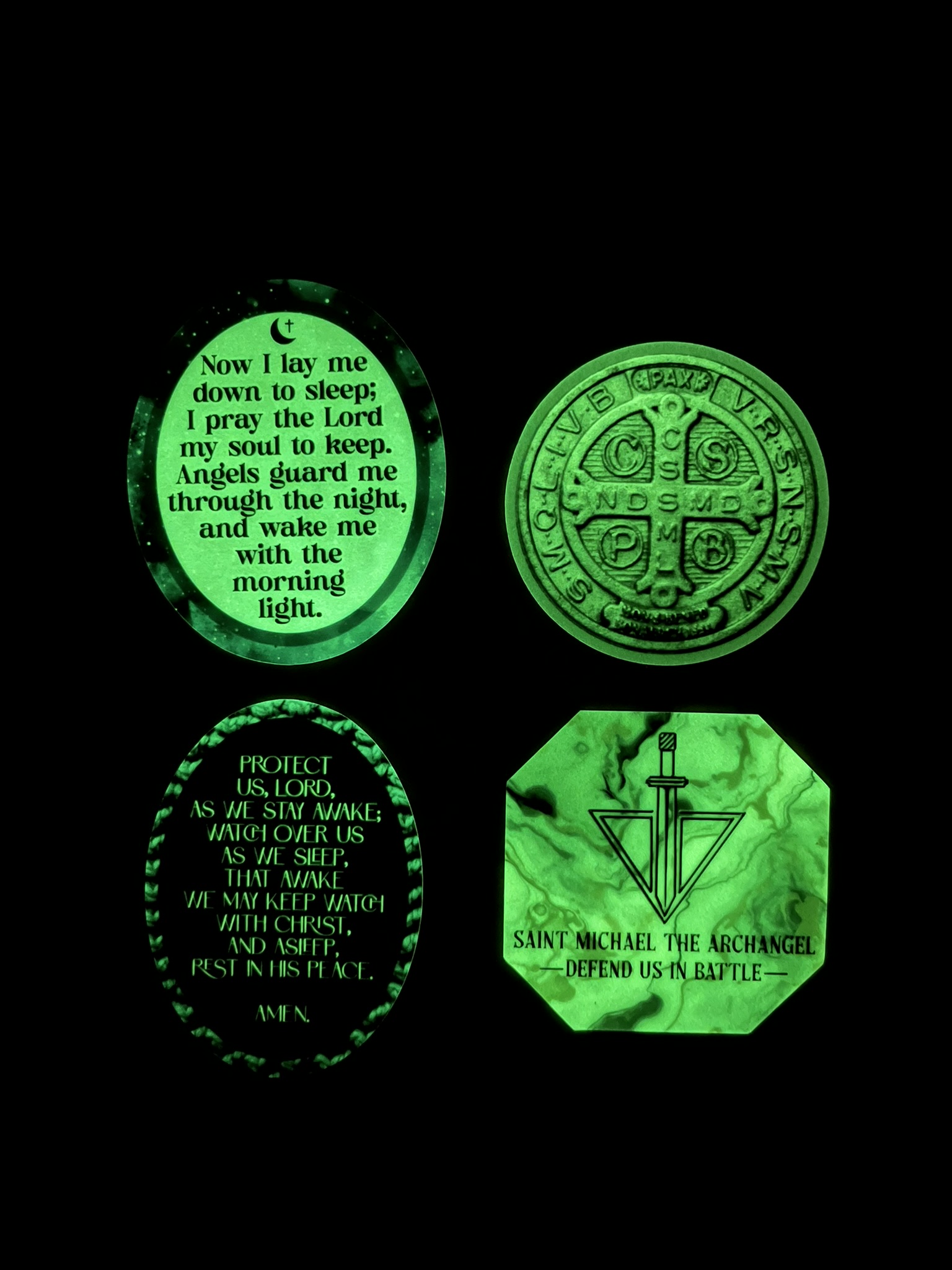 Glow-in-the-dark Stickers: St. Michael, St. Benedict, and Night Prayers