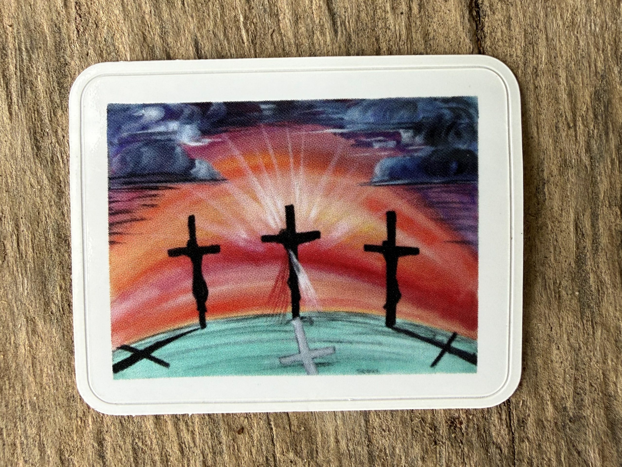 1.5″x2″ White Plastic sticker with “Good Friday” watercolor painting print.