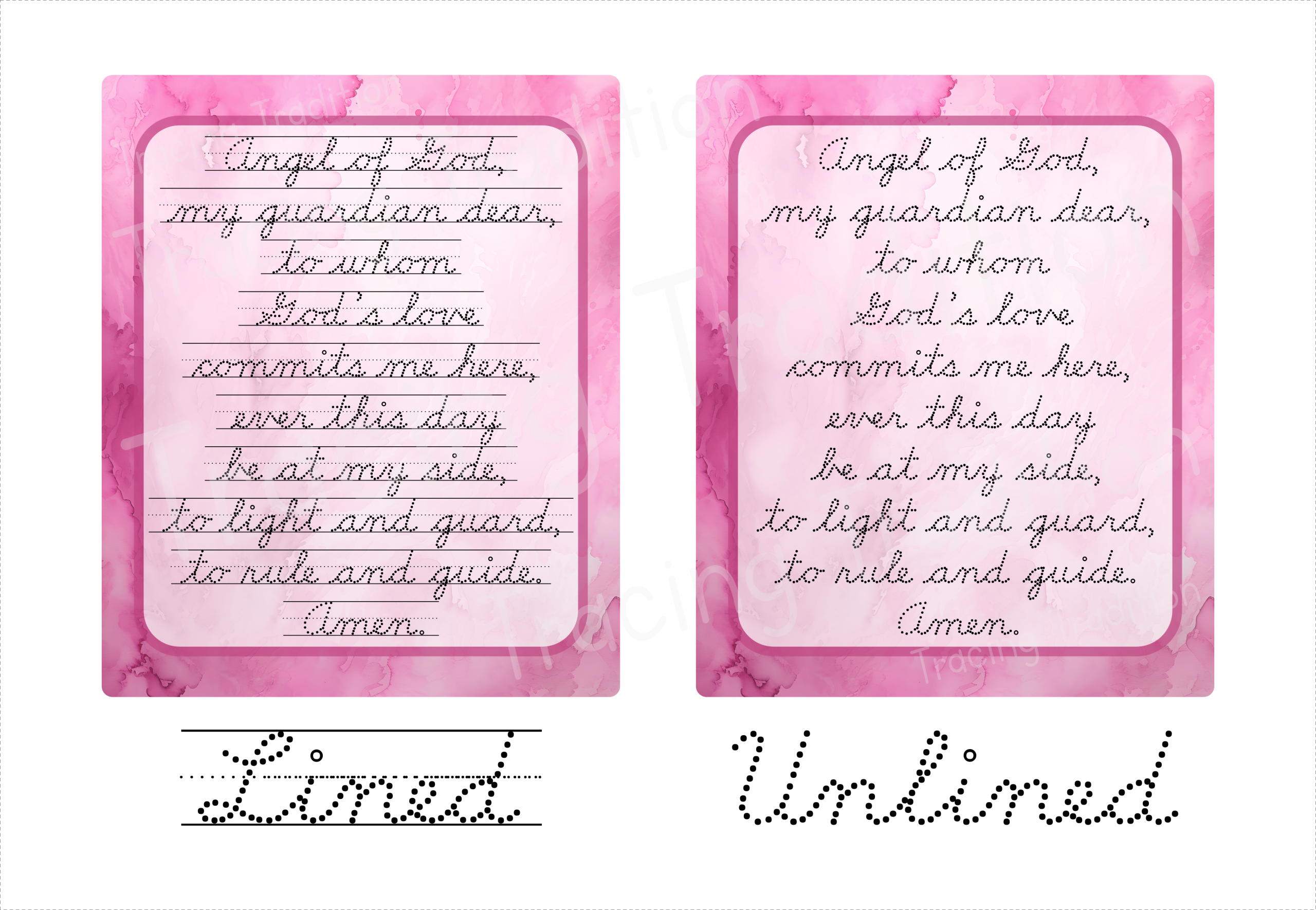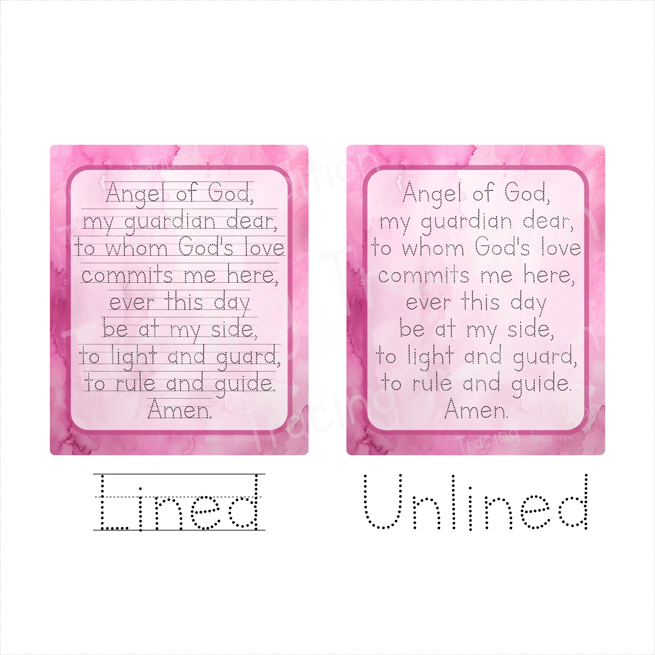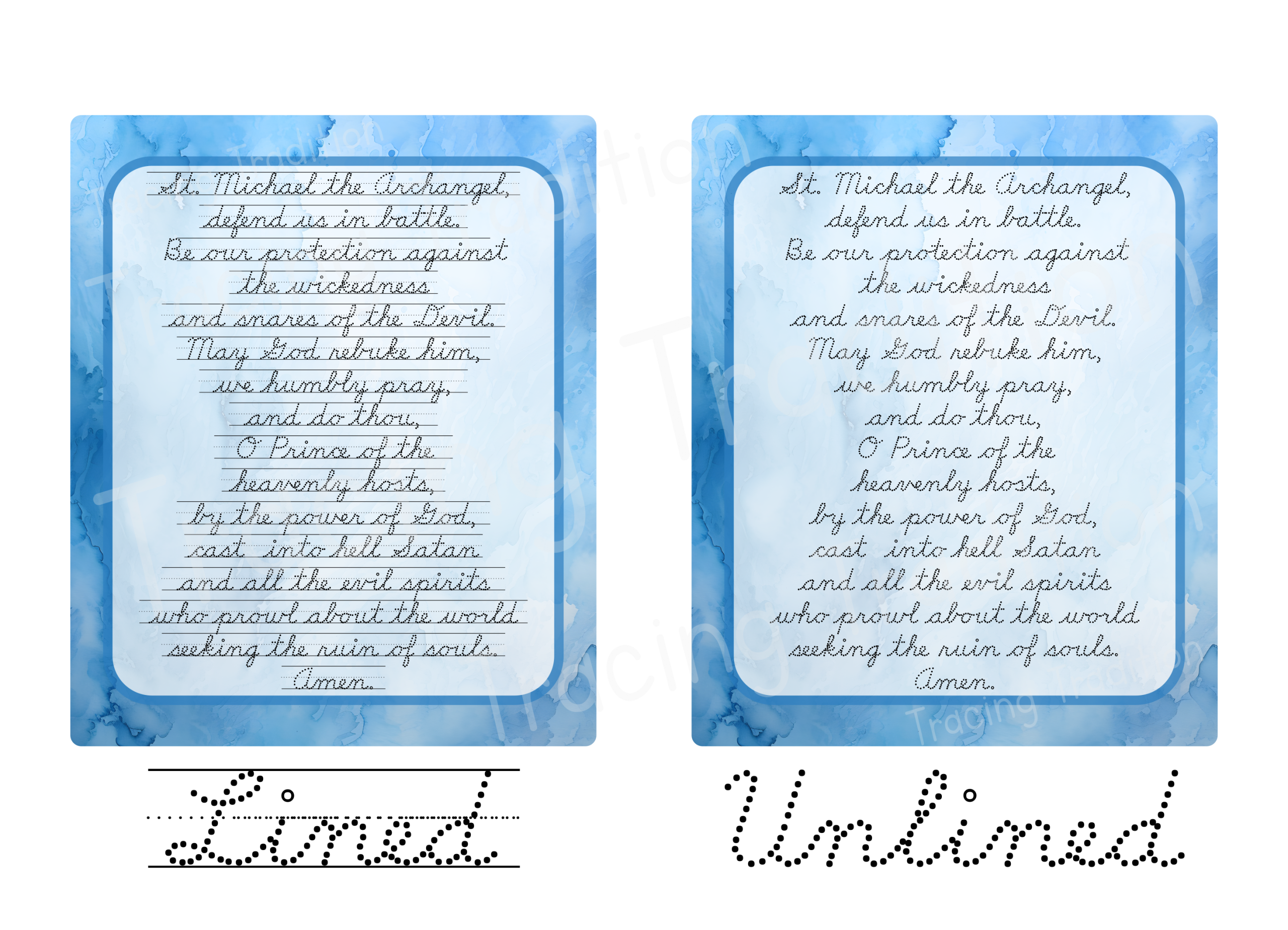 St. Michael and Guardian Angel prayer dry-erase boards for tracing practice for Catholic kids