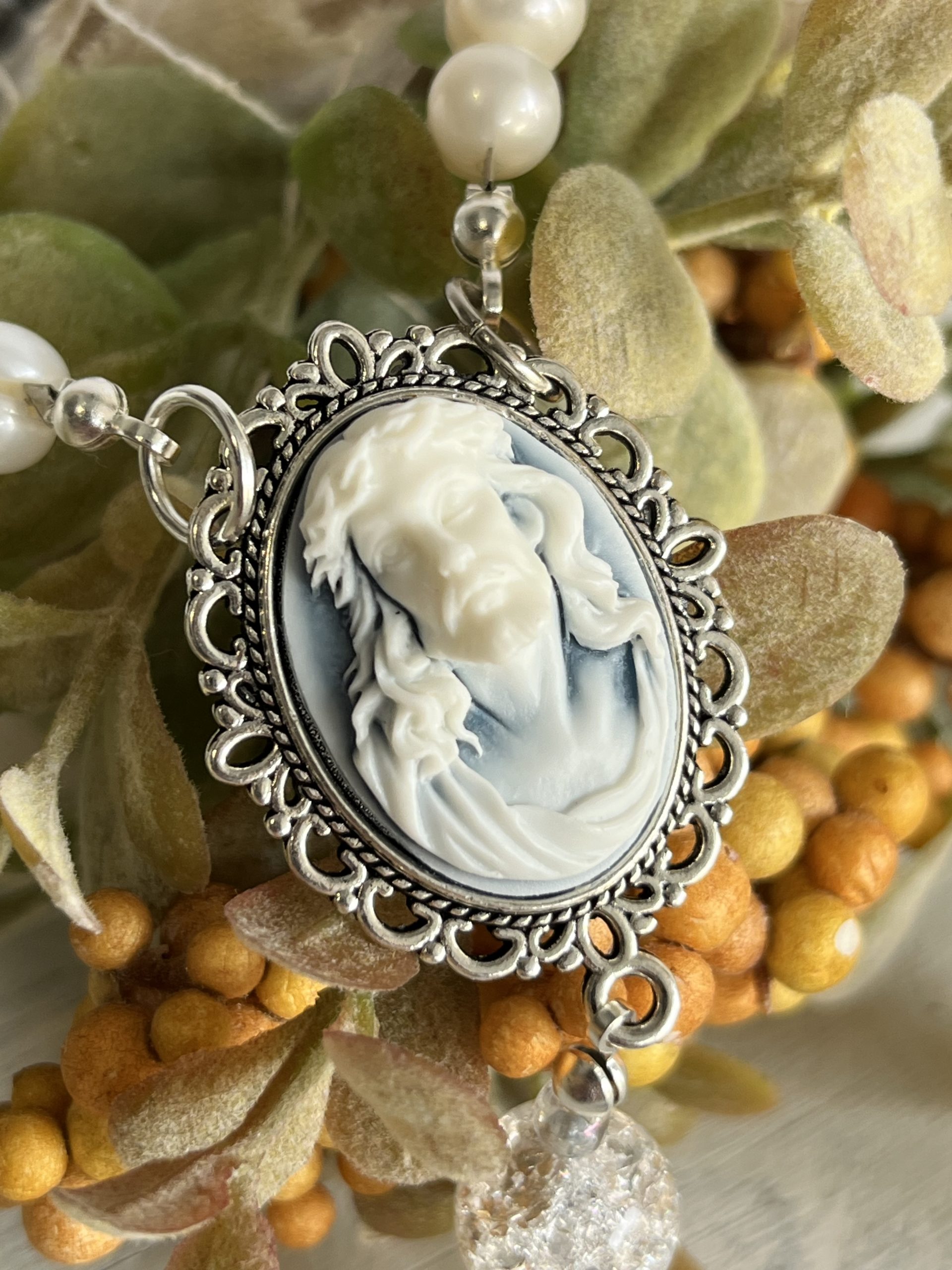 Centerpiece: Jesus crowned with thorns Cameo in silver/blue, crafted in Italy.