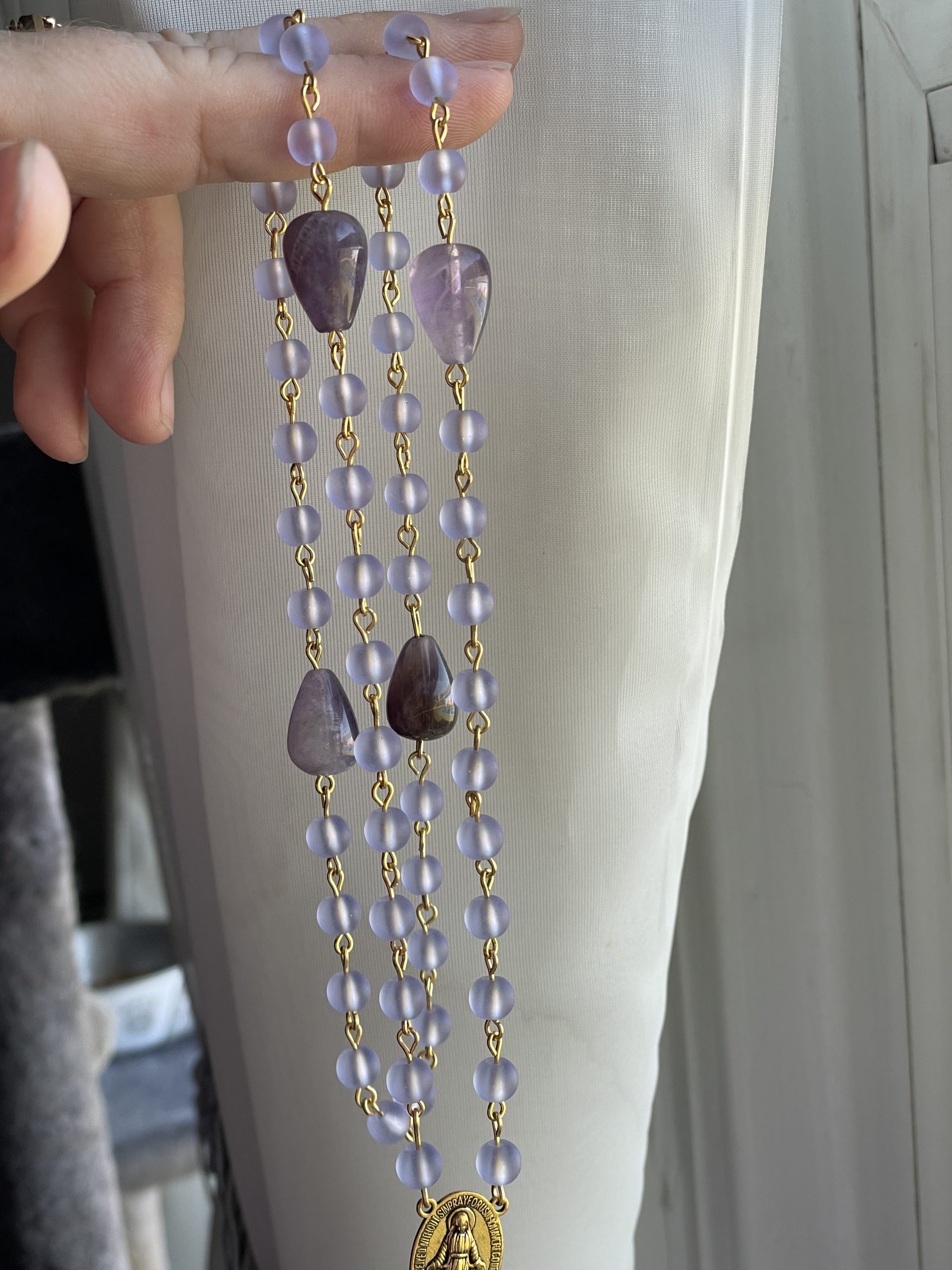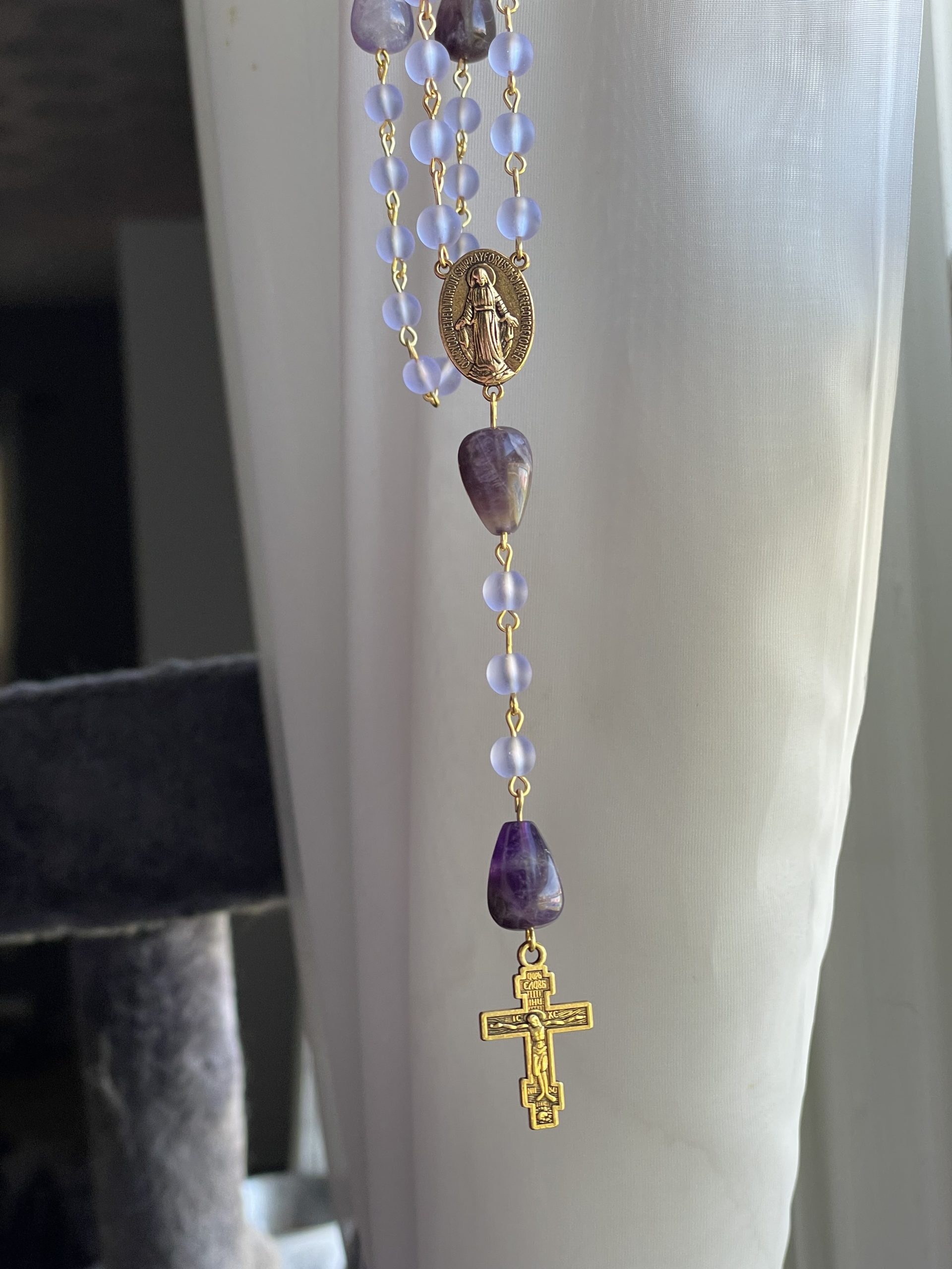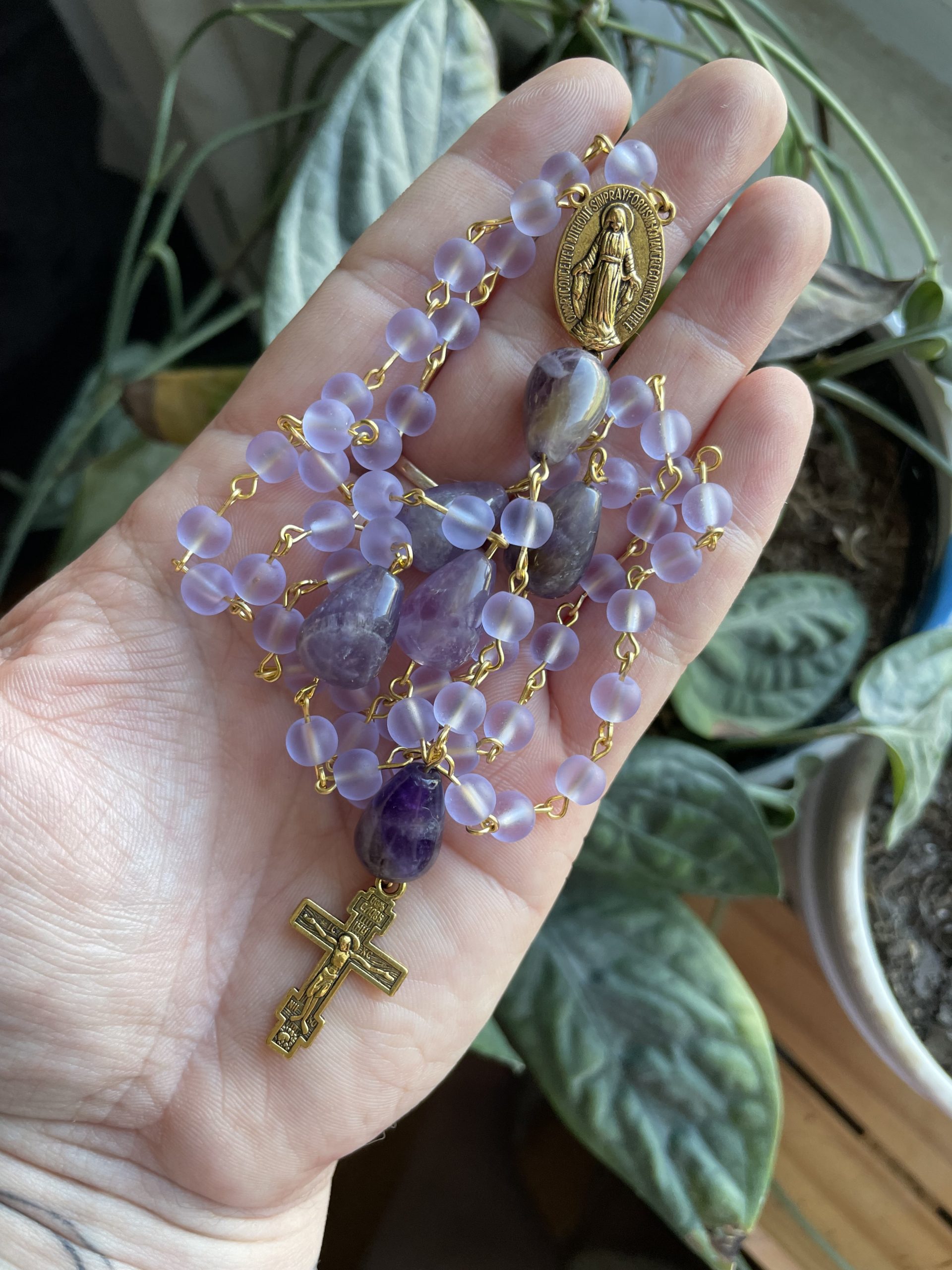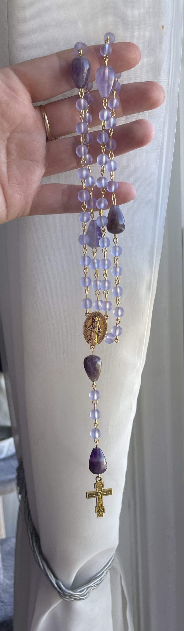 Lavender Glass and Amethyst Handmade Rosary – St. Castor