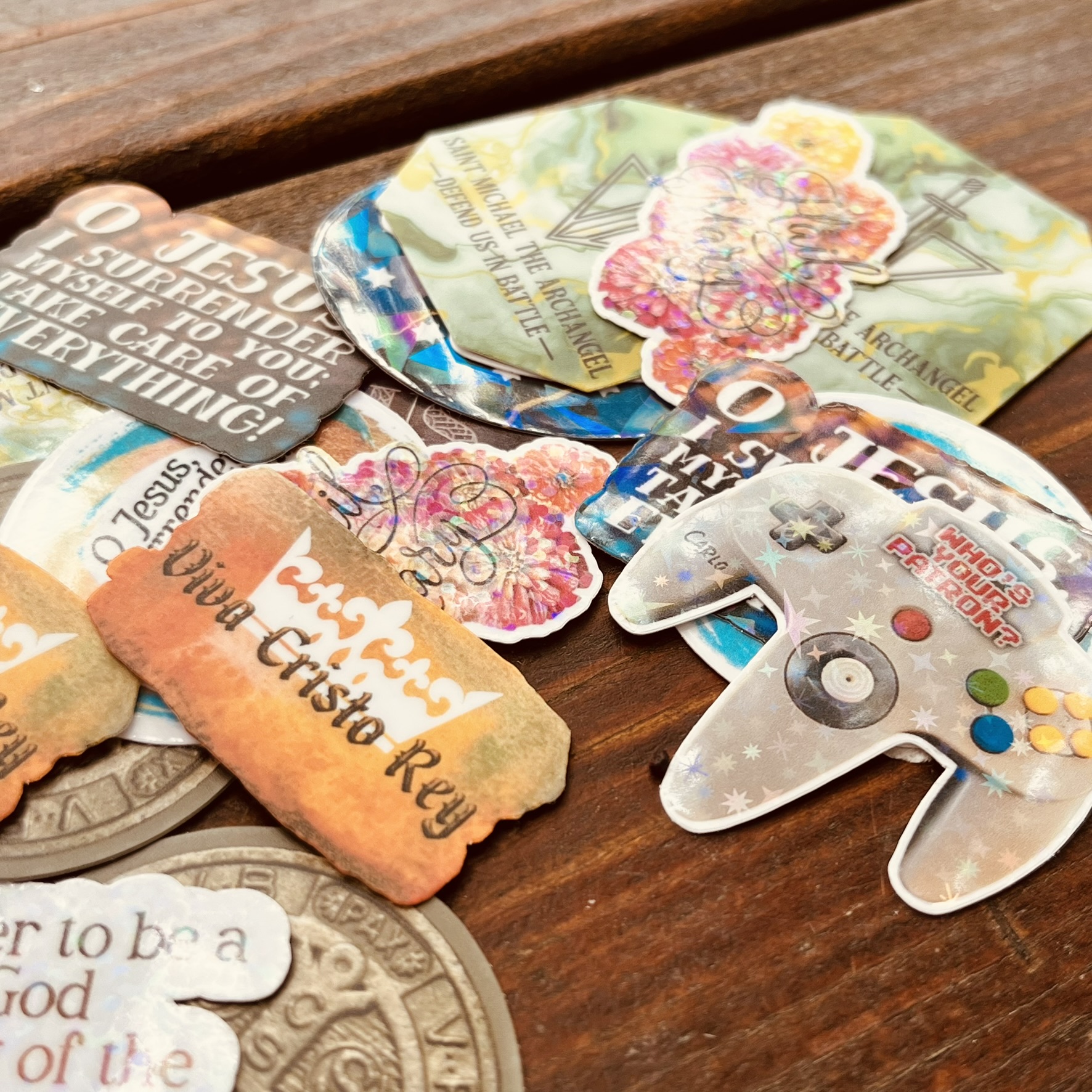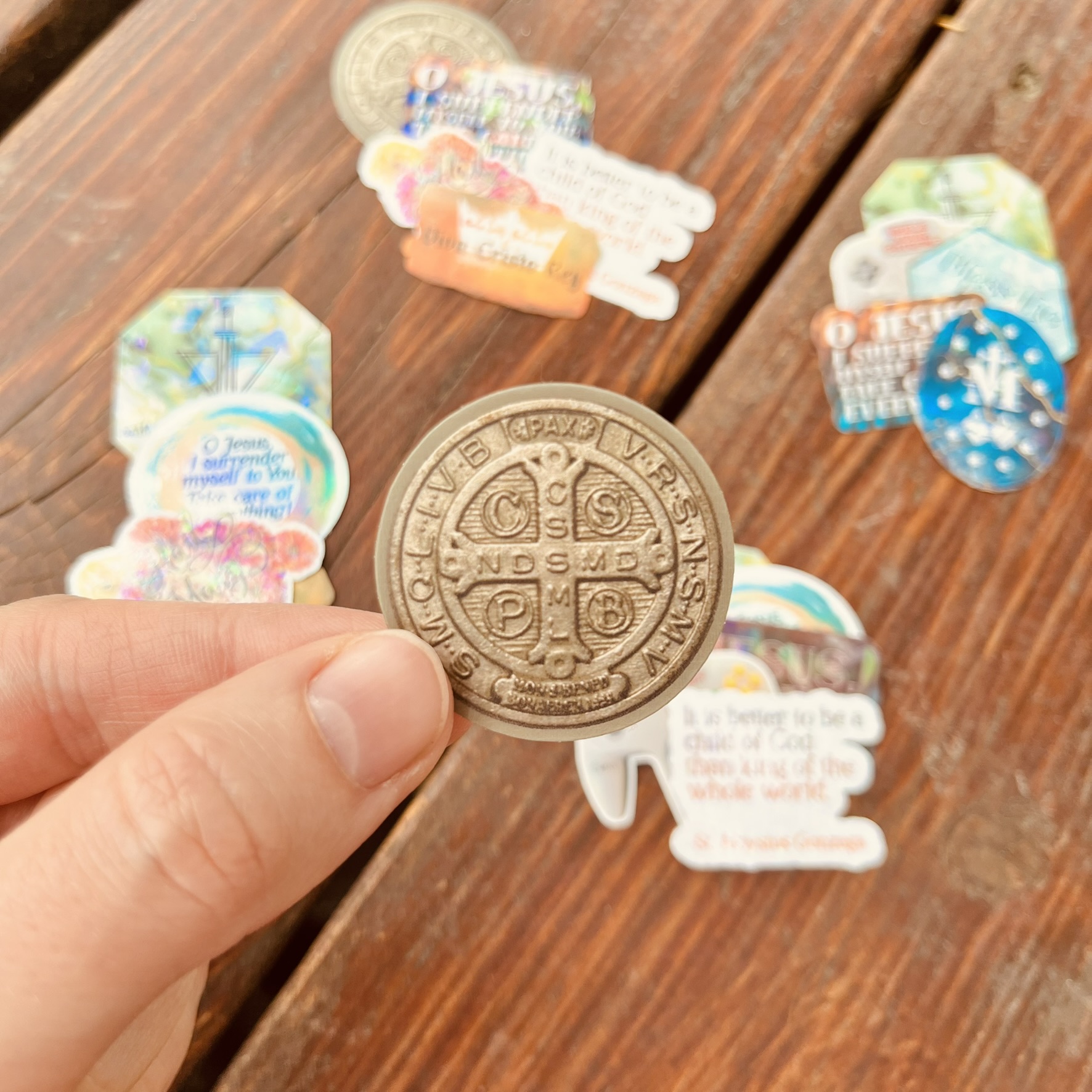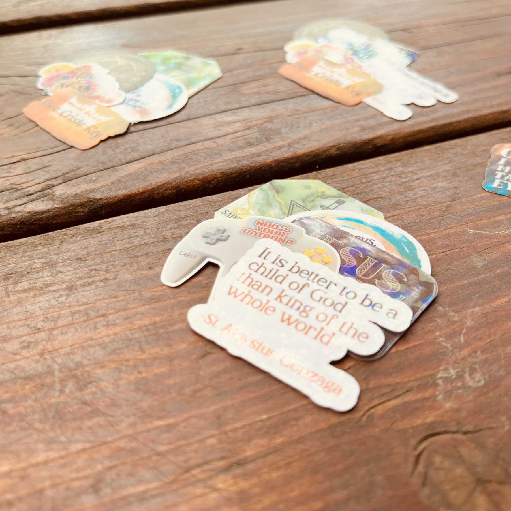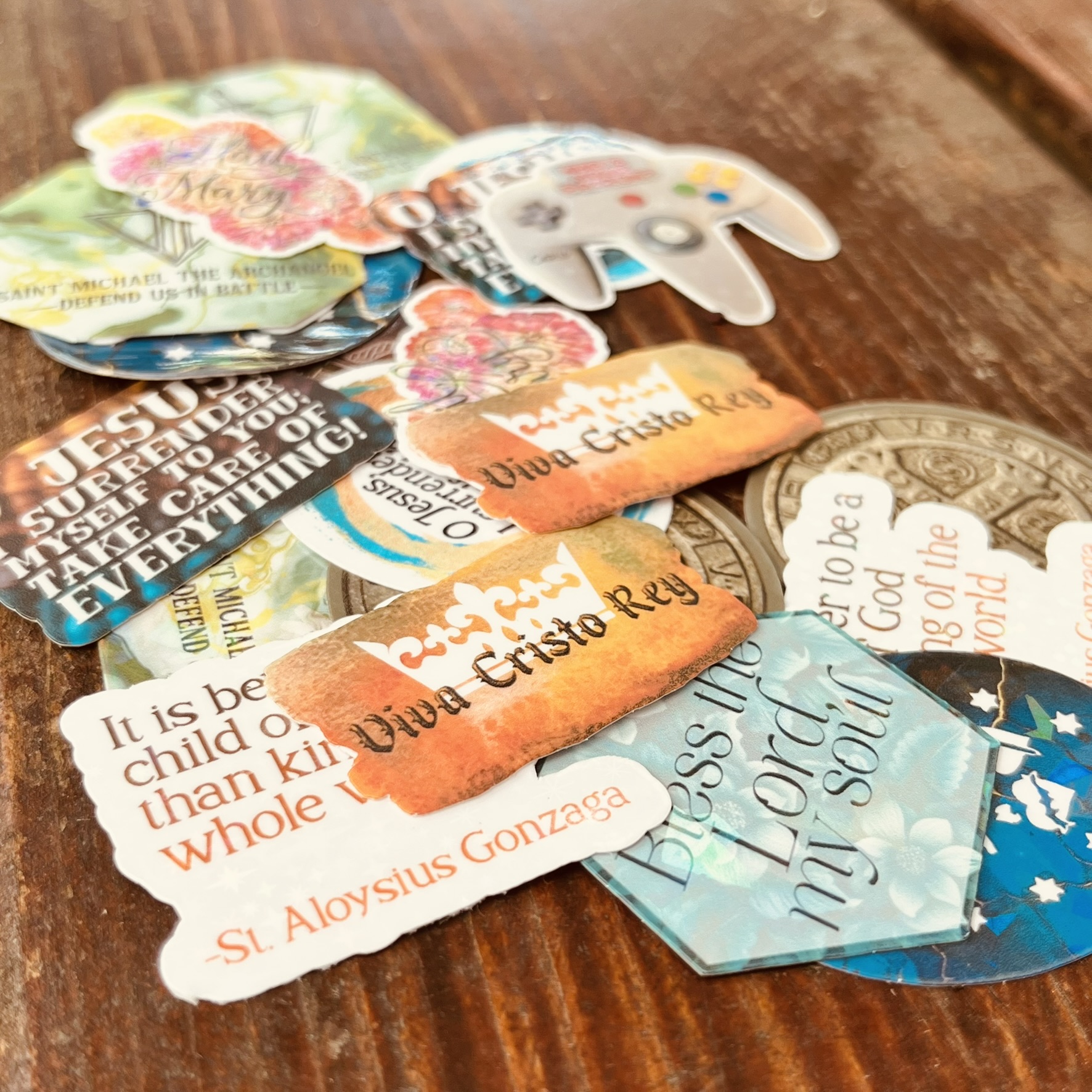 Mini Catholic Stickers: Water-Resistant Mystery Packs of 5 (Designs Vary, 1.5″ Max H/W)