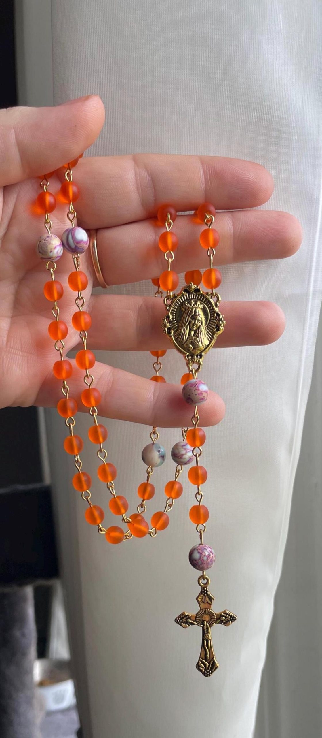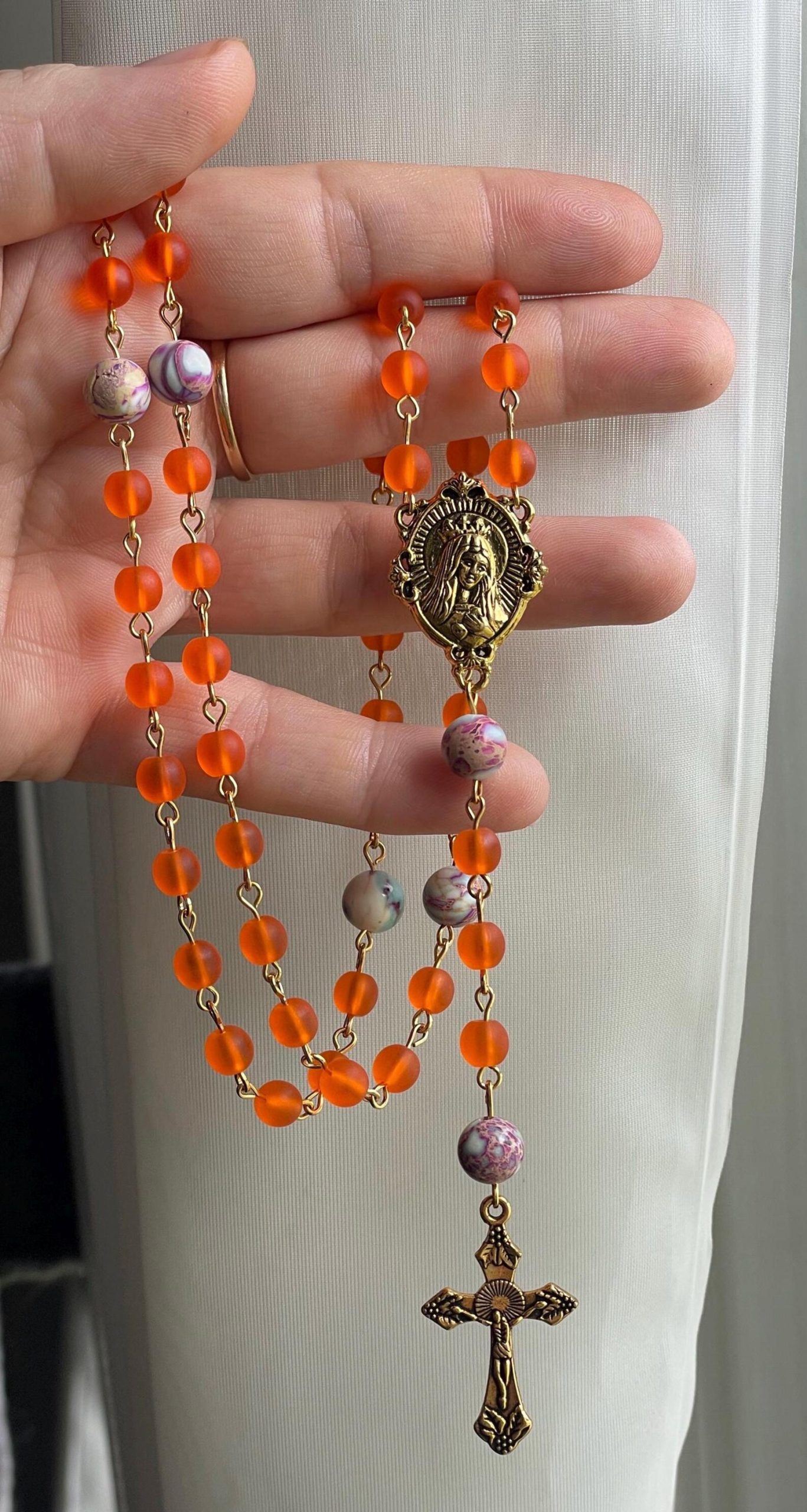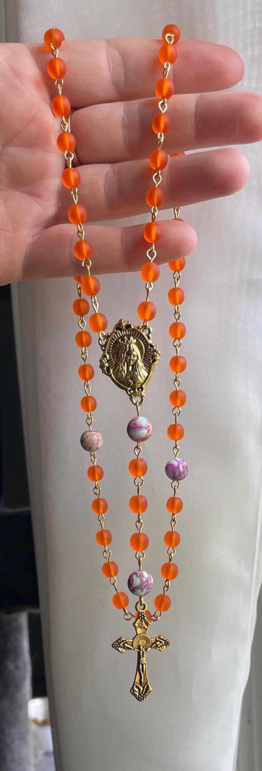 Orange Glass and Dyed Imperial Jasper Handmade Rosary – St. Berthold