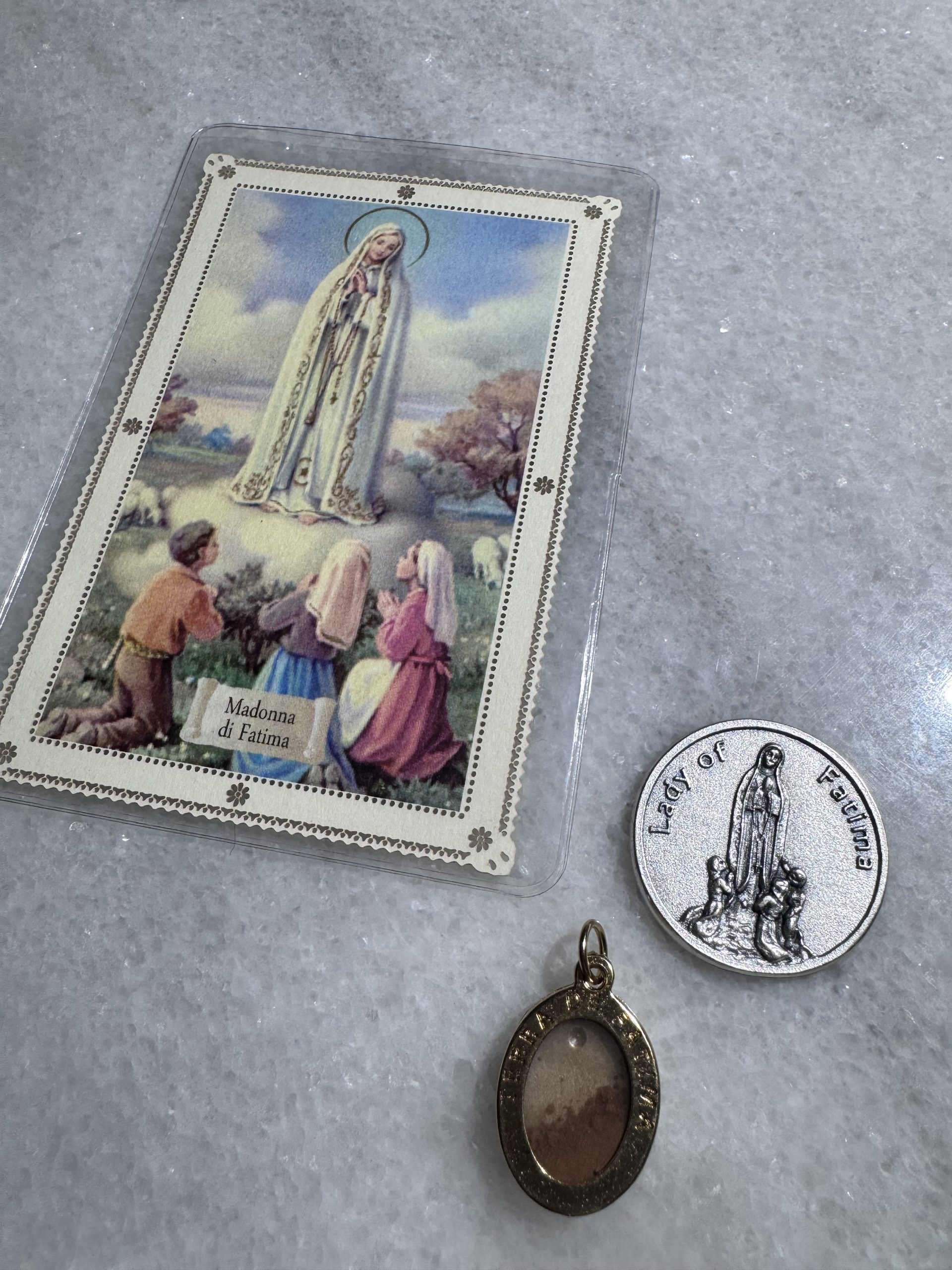 • Our Lady of Fatima medal containing earth from Fatima