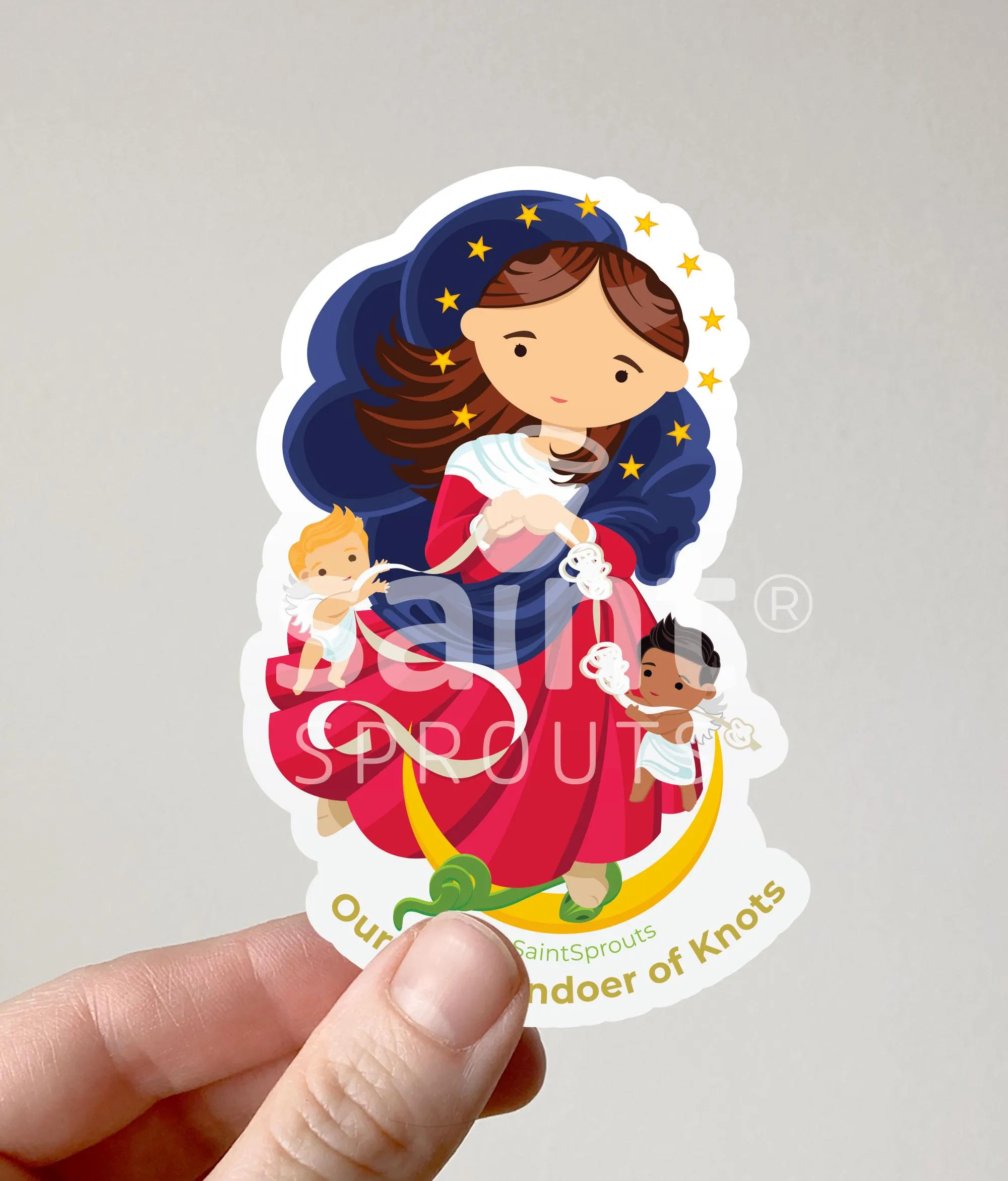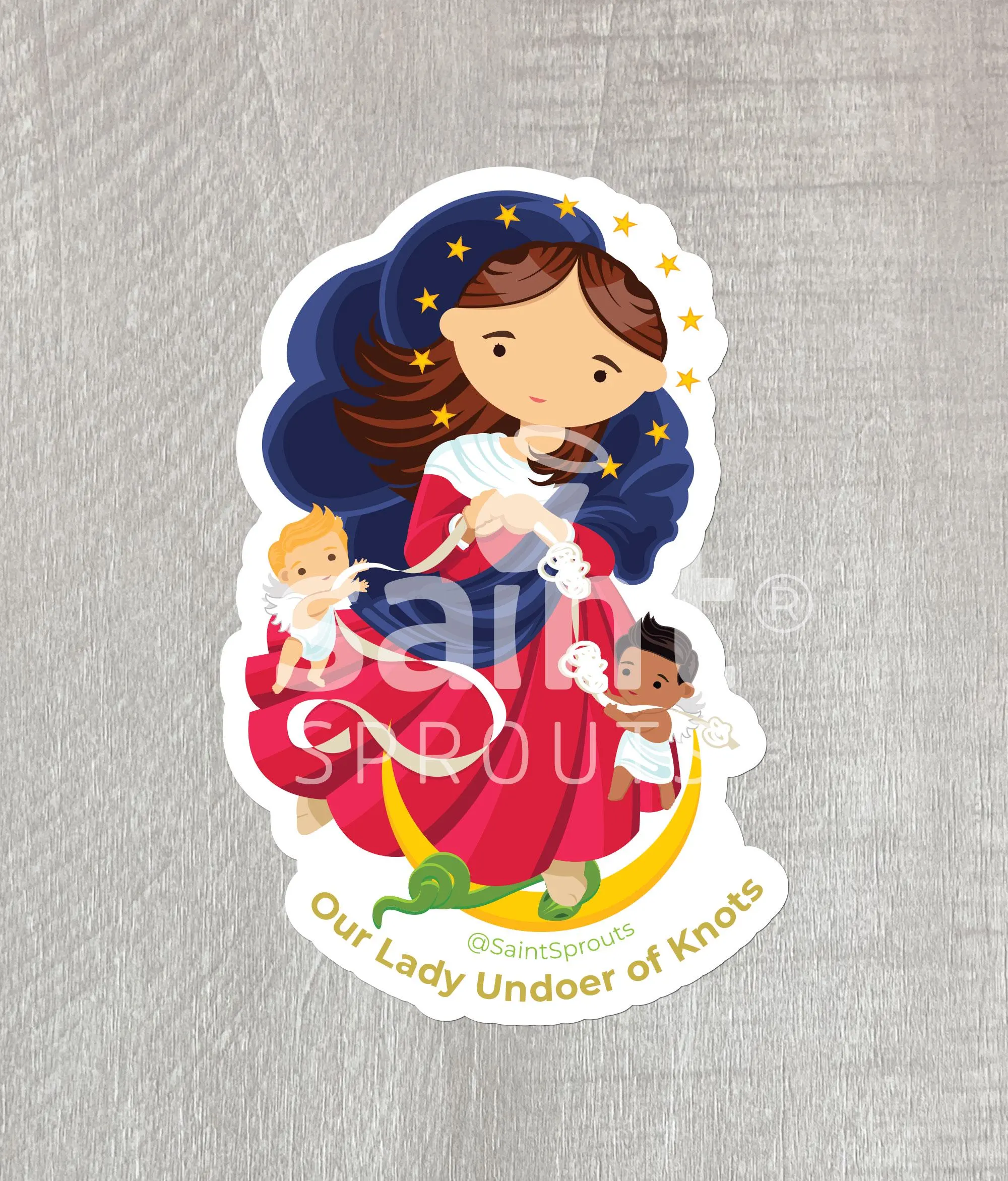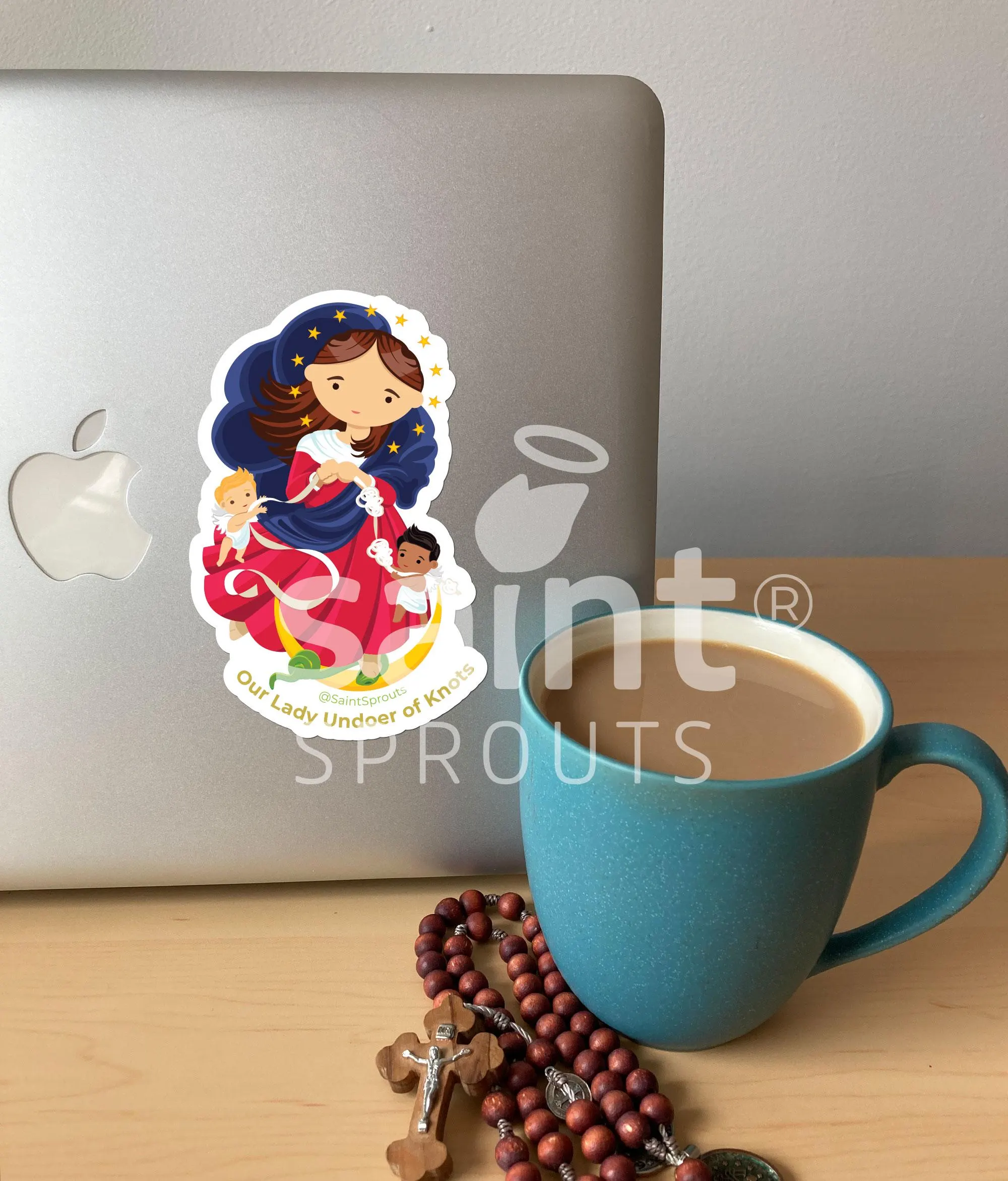 This meaningful sticker brings Our Lady’s problem-solving grace wherever you go! Add her to your laptop, water bottle, tablet, car, notebook, Bible, or prayer journal. A wonderful addition to your Catholic devotionals or as a thoughtful gift for anyone facing difficult situations who needs Mary’s special assistance in untying life’s knots.