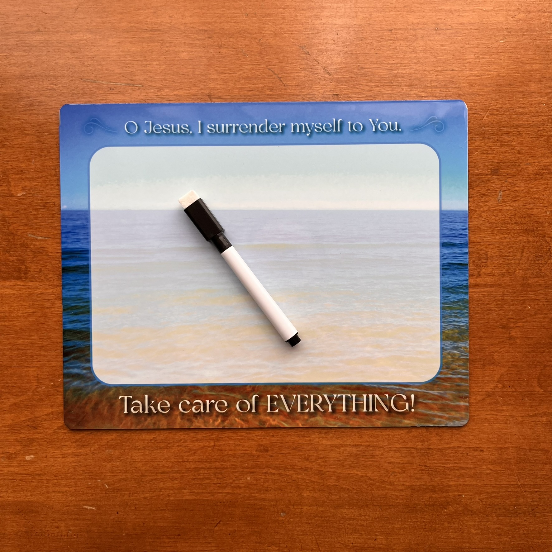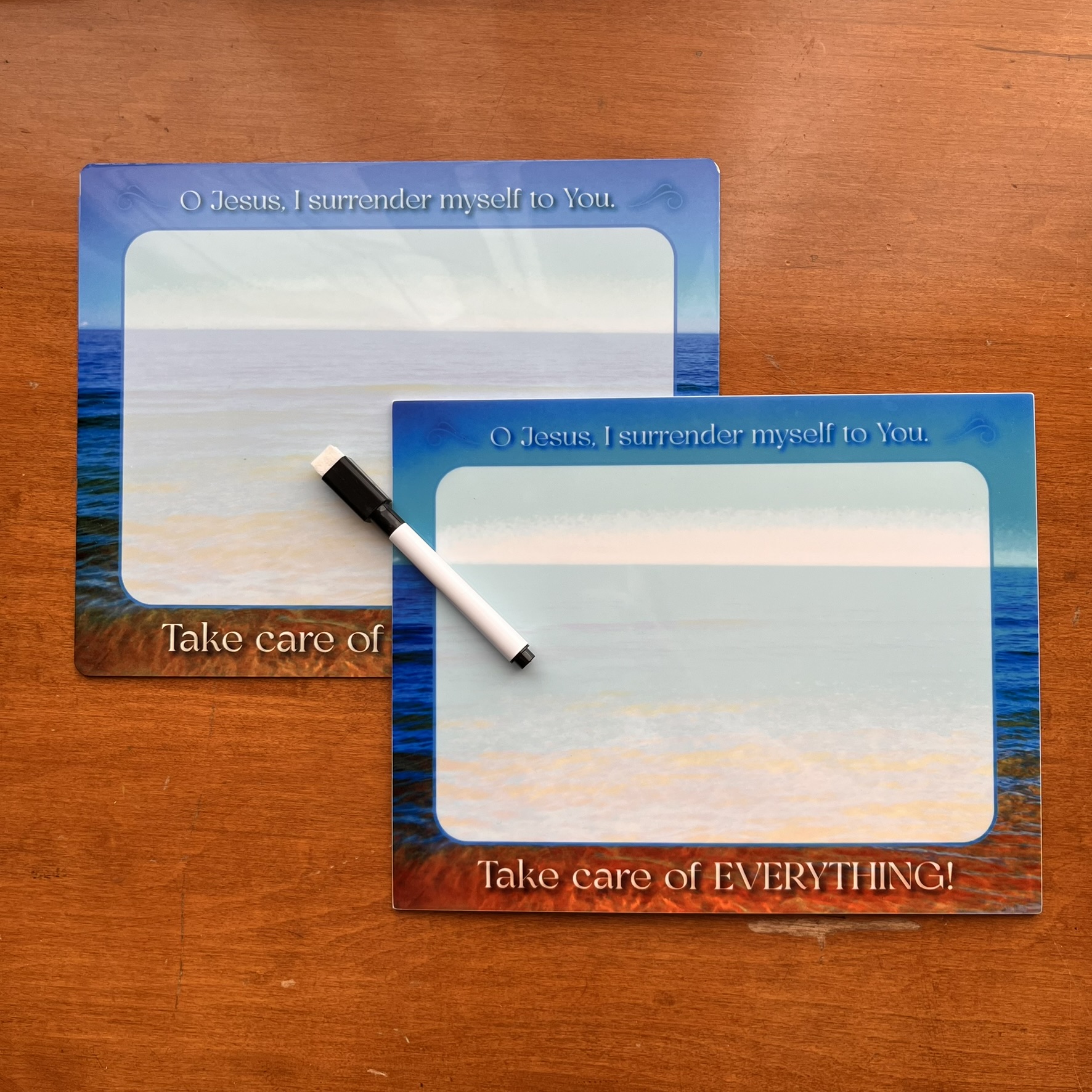 Choose from a selection of two premade discounted Surrender Novena blank dry-erase boards, meant to be used in the home for multiple purposes, such as meal planning, notes, to-do lists, prayer intentions, and more!