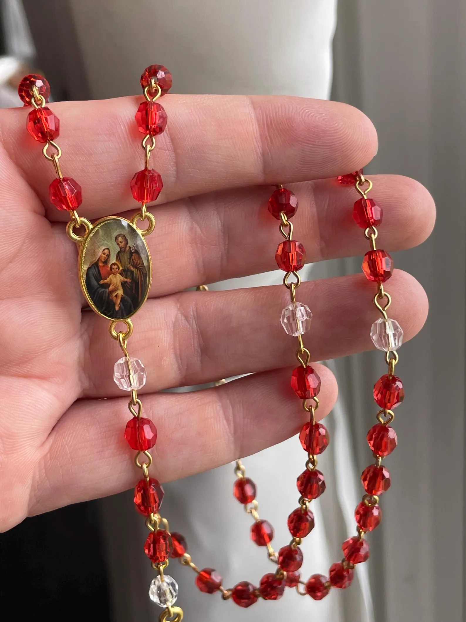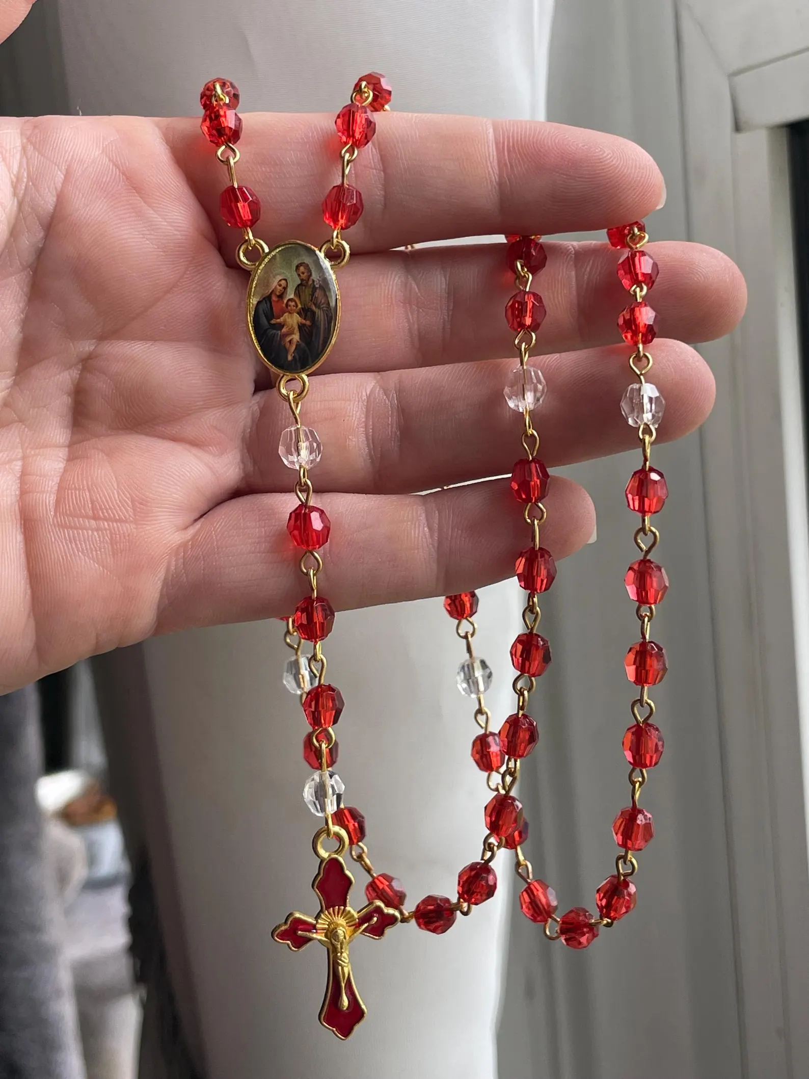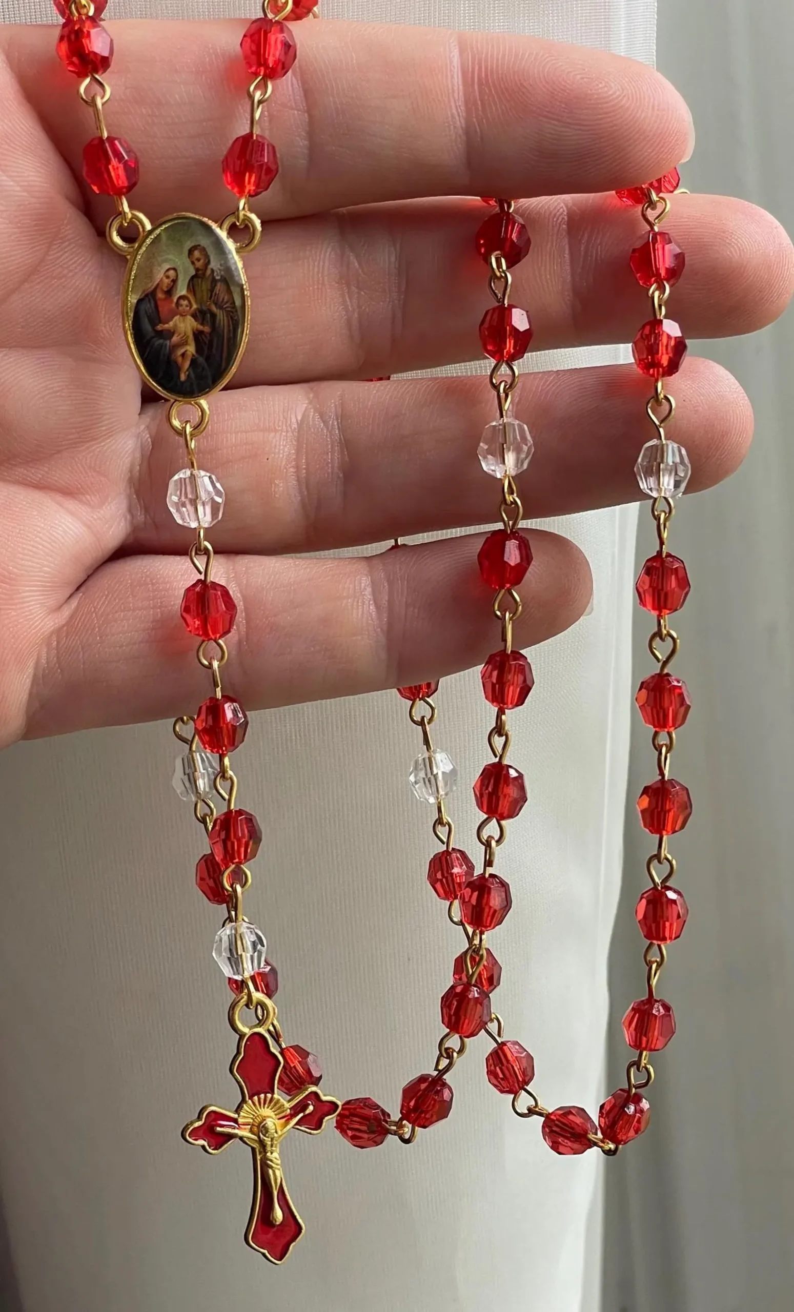 Red and Clear Acrylic Rosary – Enamel Crucifix & Centerpiece, Kids First Communion