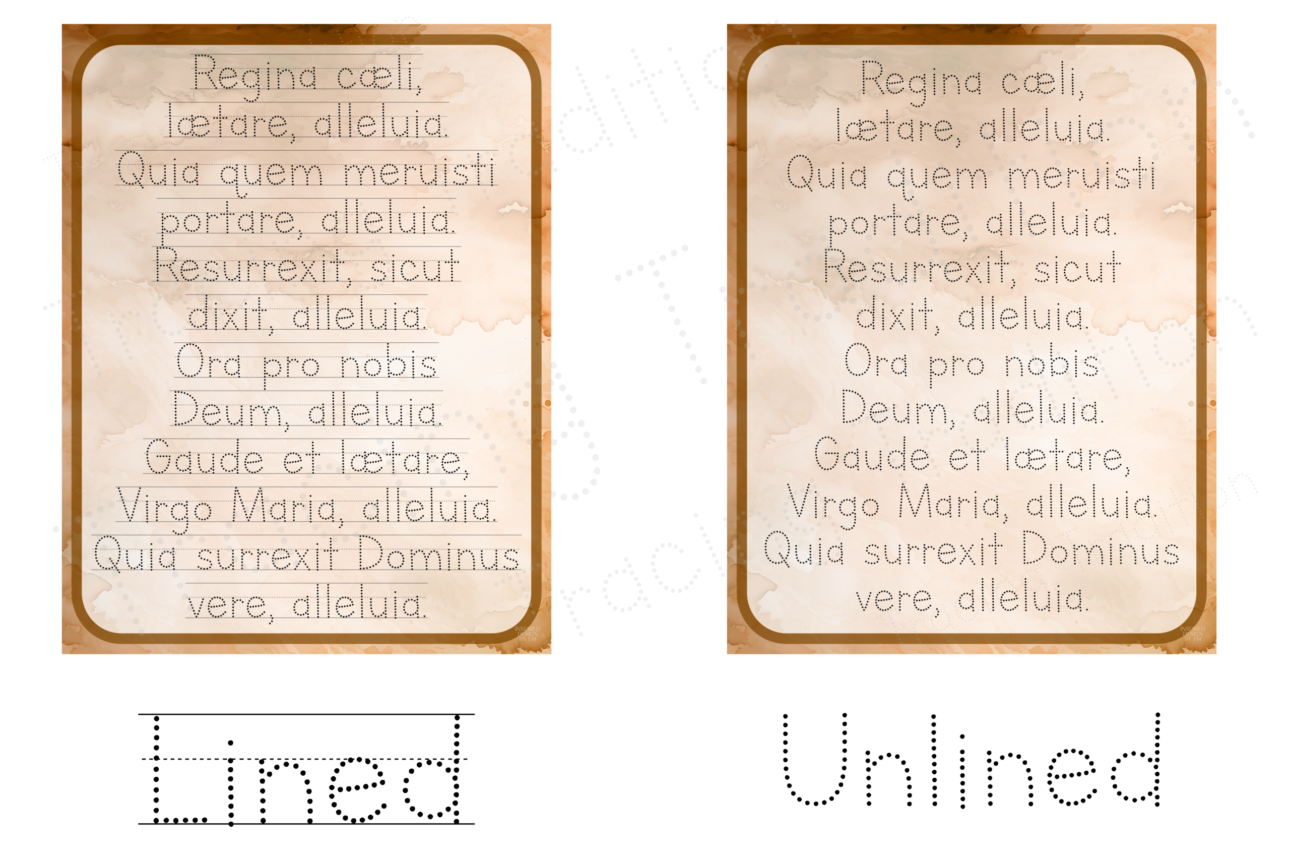 Perfect for Easter season or all-year round to teach children or pray through this beautiful Marian prayer and hymn in Latin.