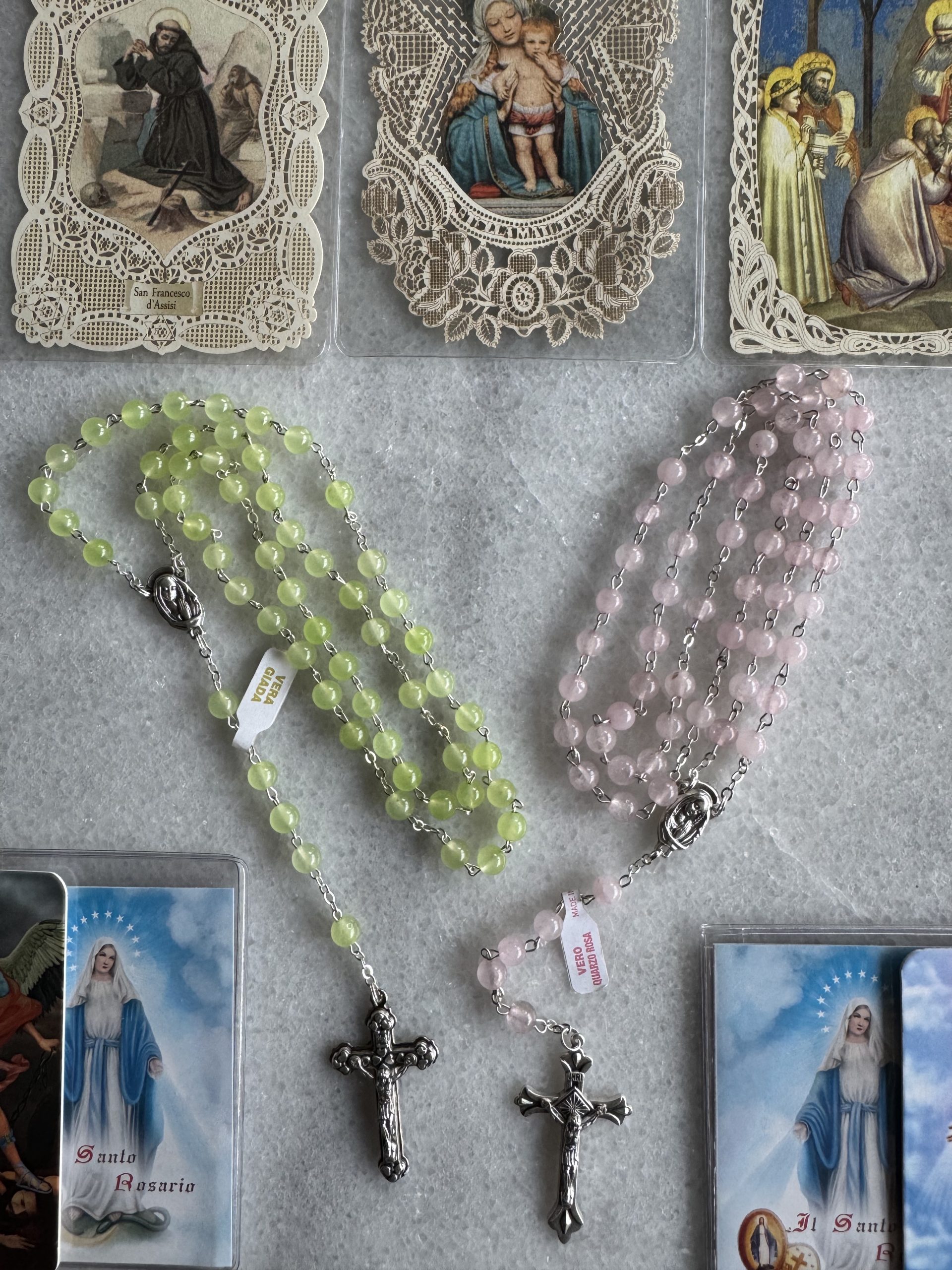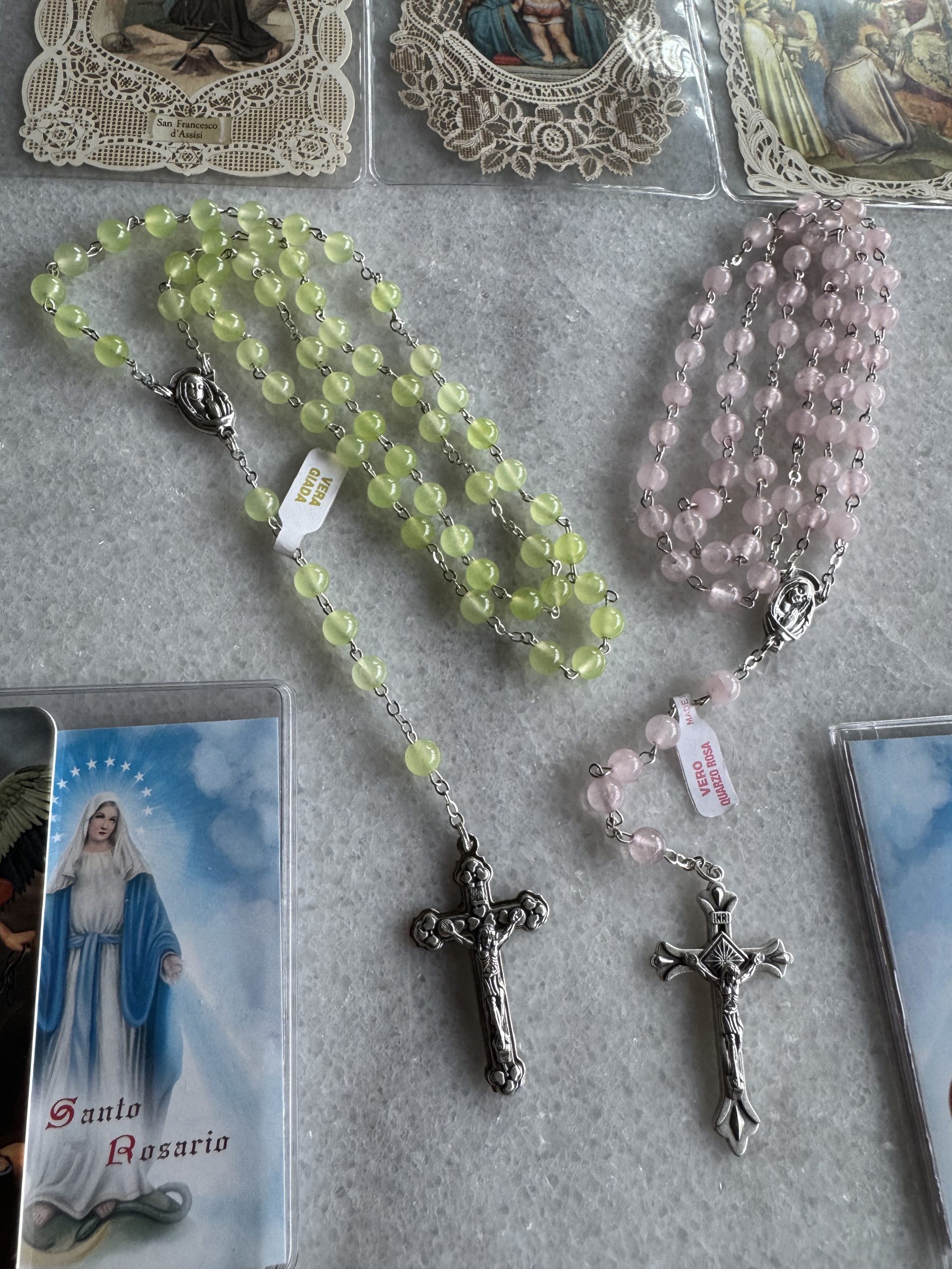 Rose Quartz & Green Jade Italian Gemstone Rosary Gift Set