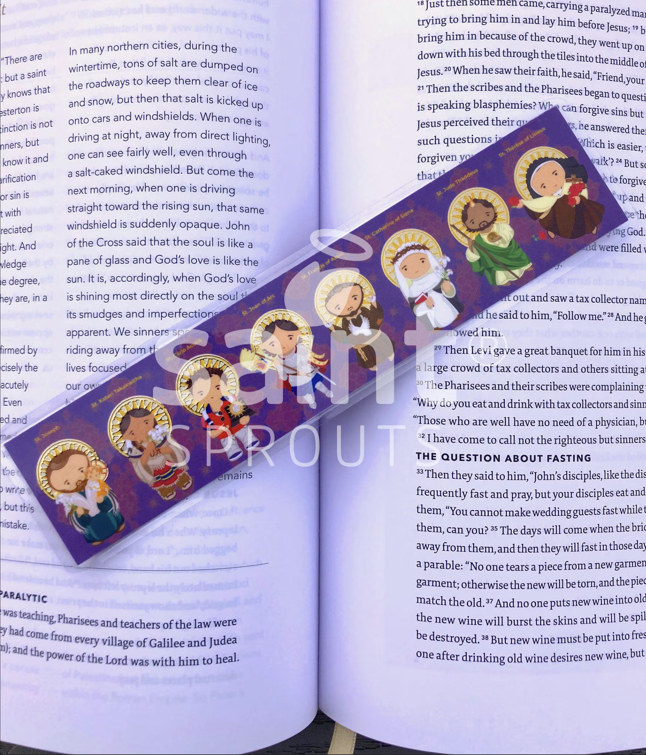 Enhance your spiritual reading with our beautiful Catholic Saints bookmark featuring eight beloved saints from various walks of life and vocations. Each bookmark showcases original artwork, thoughtfully illustrated to reflect the unique spirit of each saint. These durable laminated bookmarks are not only practical but serve as small devotional reminders of the faith, courage, and holiness of our heavenly friends. A perfect addition to prayer books, Bibles, devotionals, or any spiritual reading material.