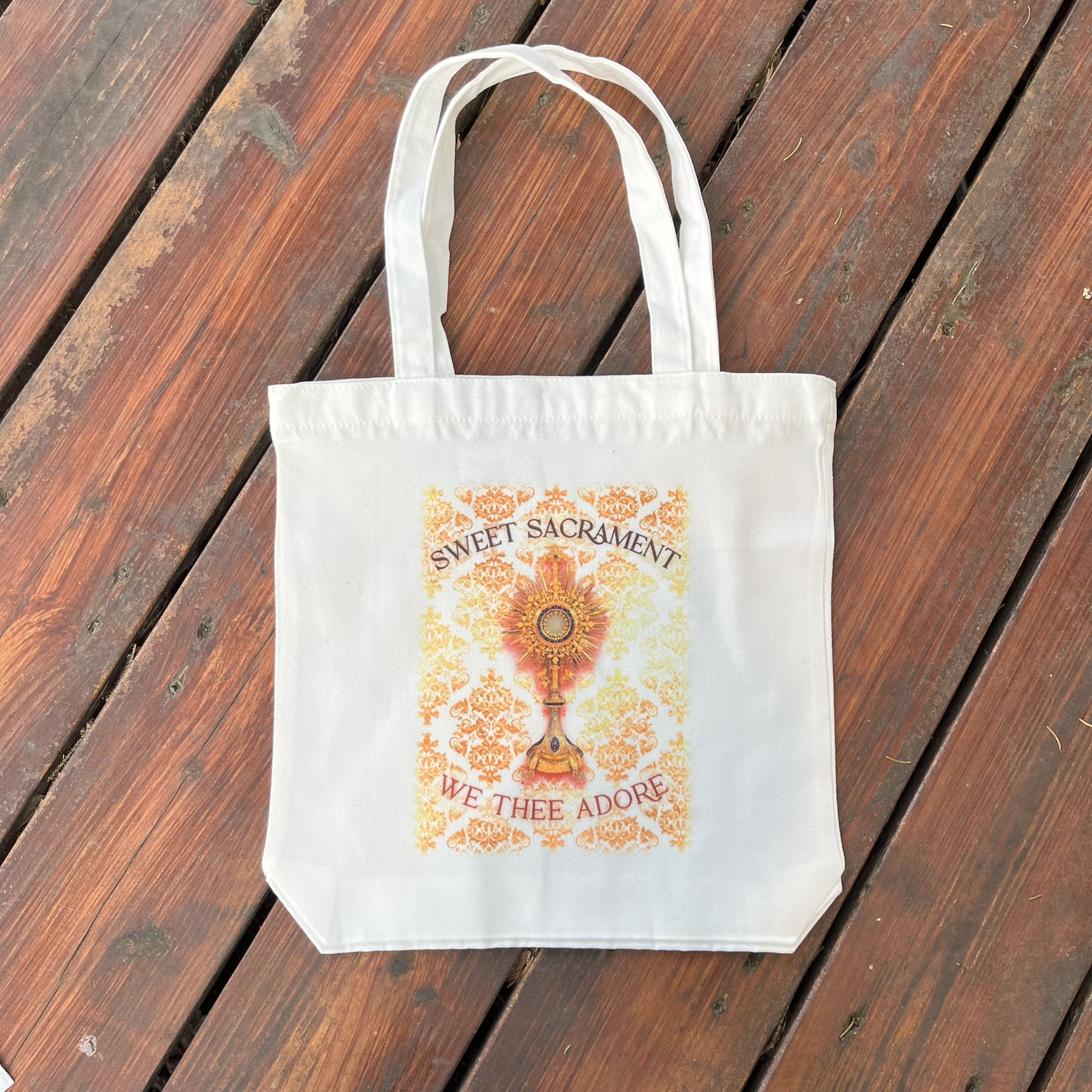 Eucharist Monstrance single-sided medium Catholic tote bag, Great for Mass, Bible Study