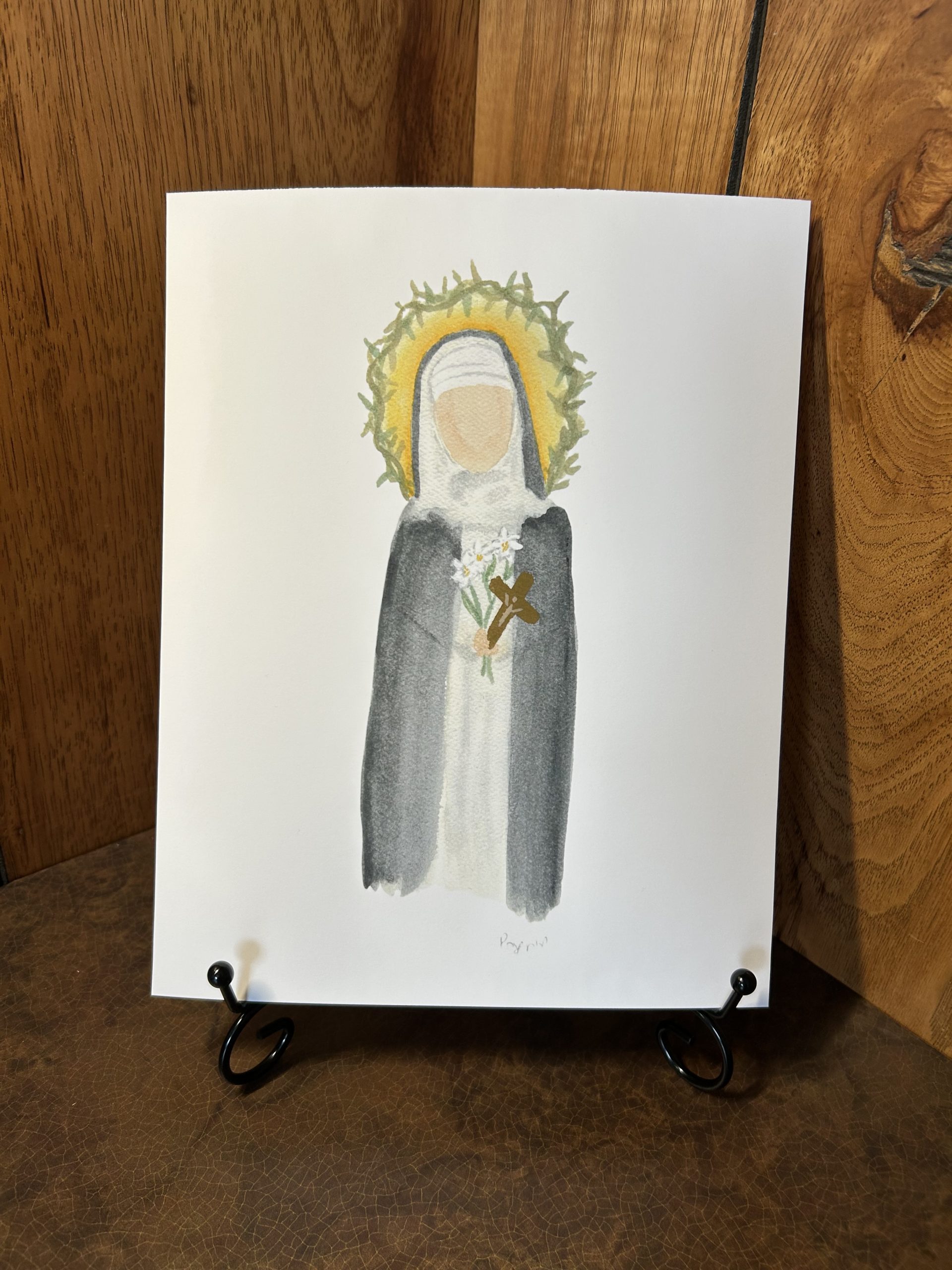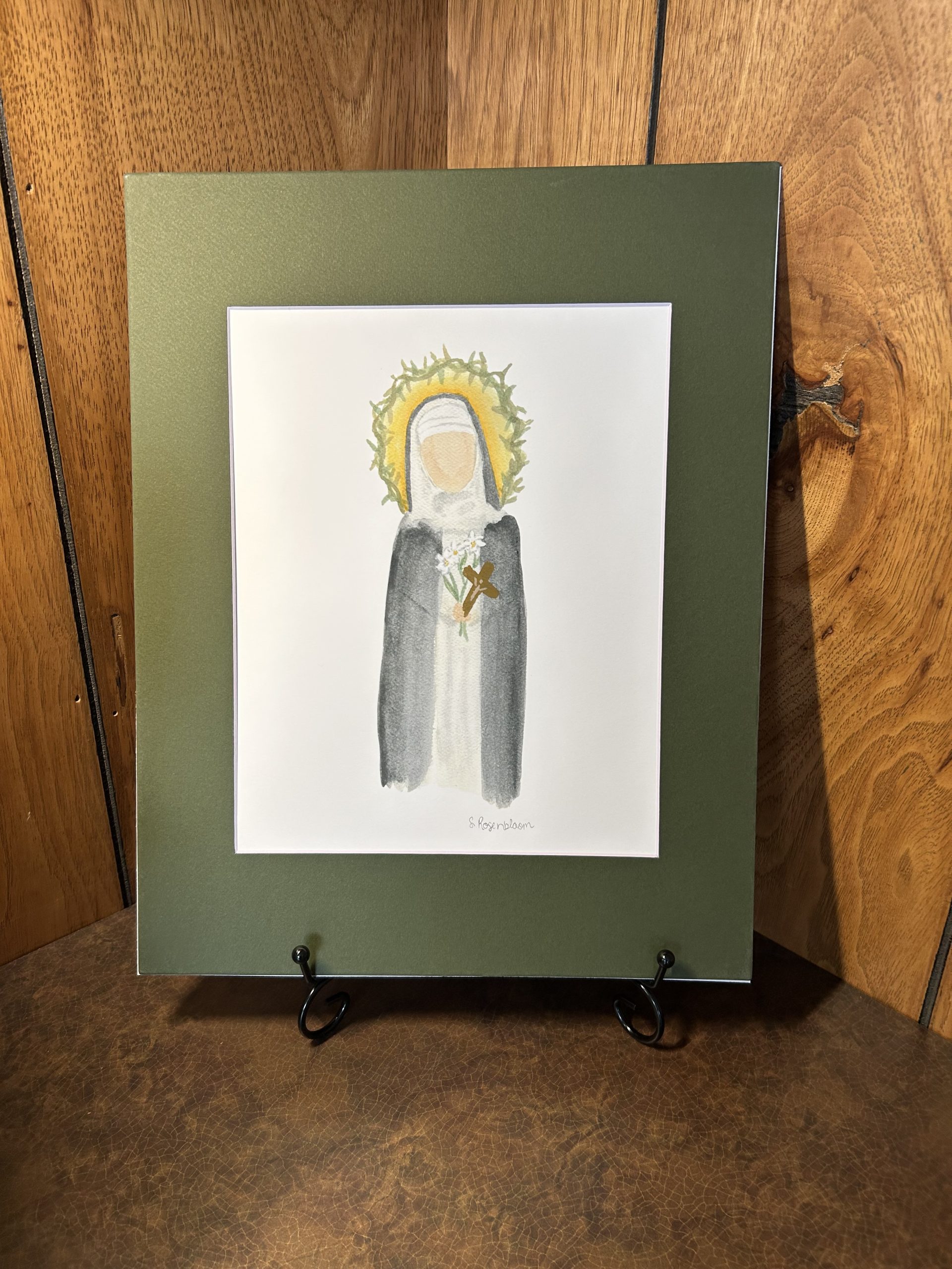 Museum-quality poster of a hand-painted watercolor of St. Catherine of Siena, patron saint of New Orleans, printed on thick matte paper.