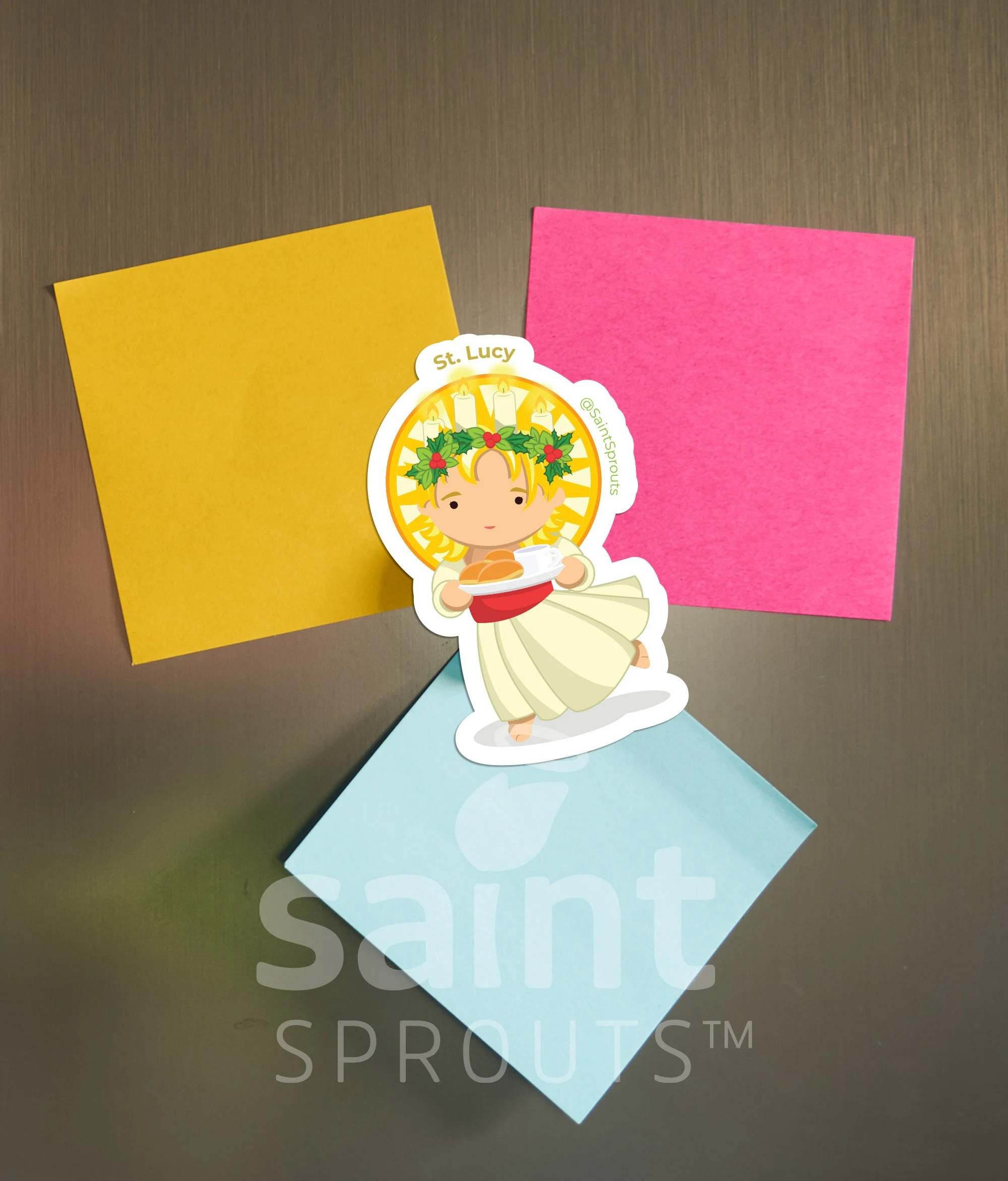 St. Lucy Magnet! Original sketch made into a magnet so you can put St. Lucy anywhere you’d like! Add her to your fridge, office, whiteboard, or car. The possibilities are endless!