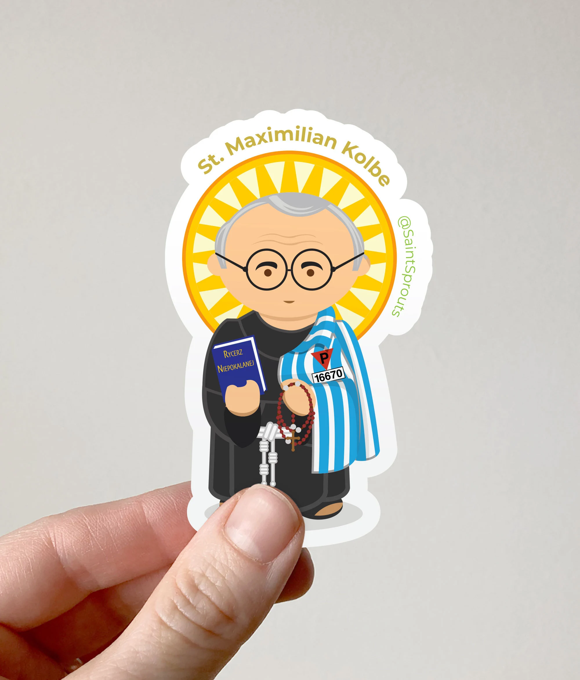 St. Maximilian Kolbe Magnet! Original sketch made into a magnet so you can put St. Maximilian anywhere you’d like! Add him to your fridge, office, whiteboard, or car. The possibilities are endless!