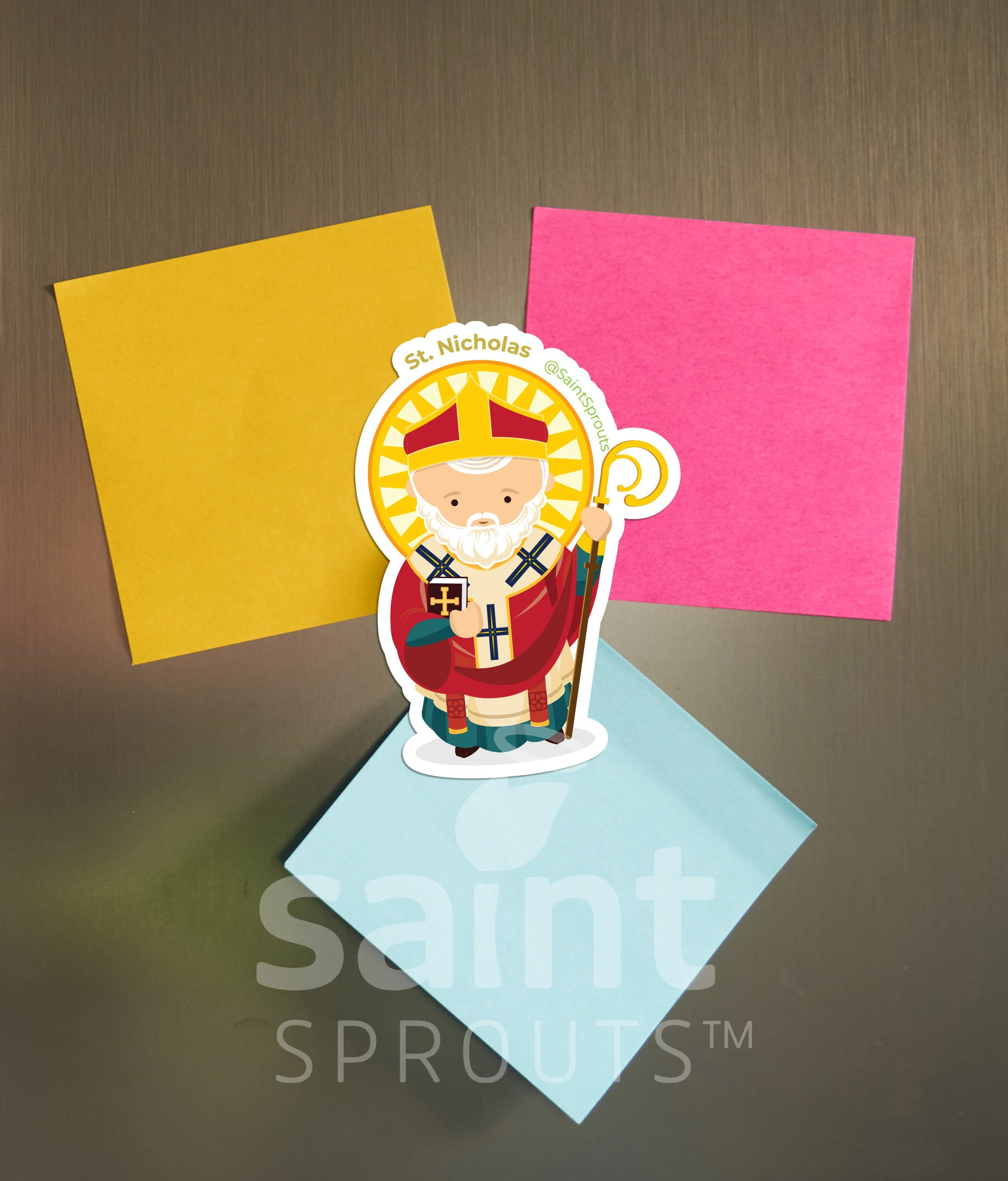 St. Nicholas Magnet! Original sketch made into a magnet so you can stick St. Nicholas anywhere you’d like! Add him to your fridge, office, whiteboard, or car. The possibilities are endless!