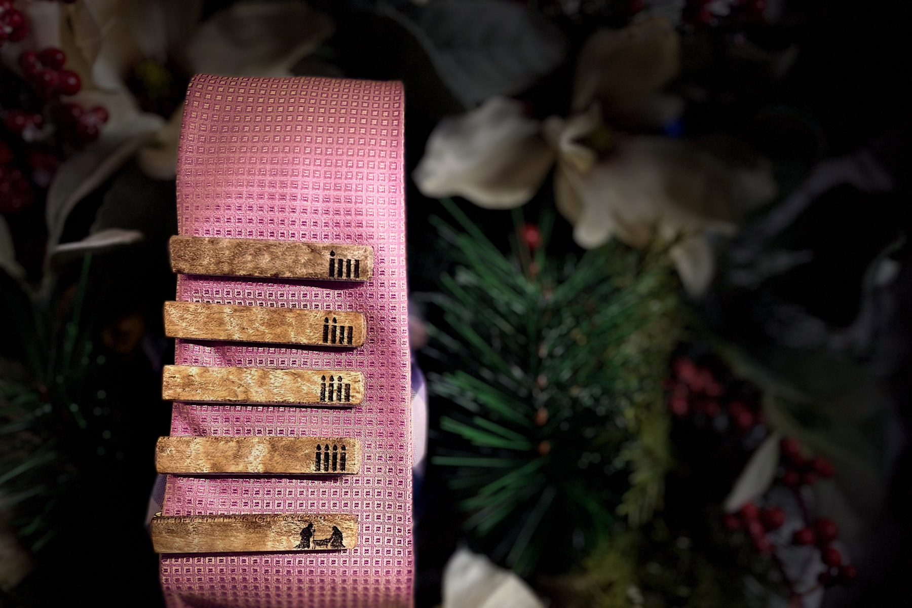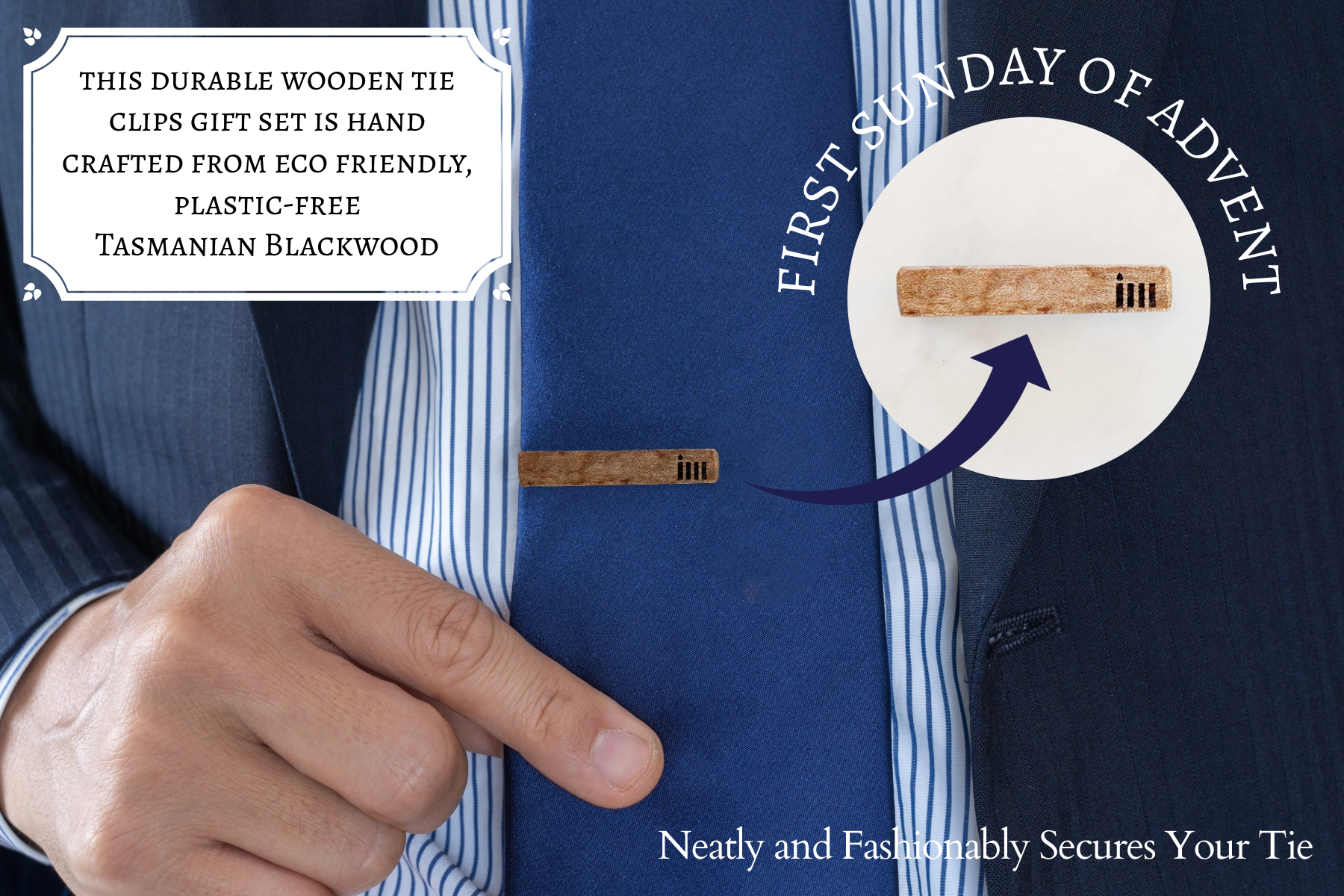 Celebrate the anticipation of Advent and the joy of Christmas with this unique set of 5 wooden tie bars. Each tie bar is crafted from rich Tasmanian Blackwood and laser-engraved to mark the Advent season and Christmas.