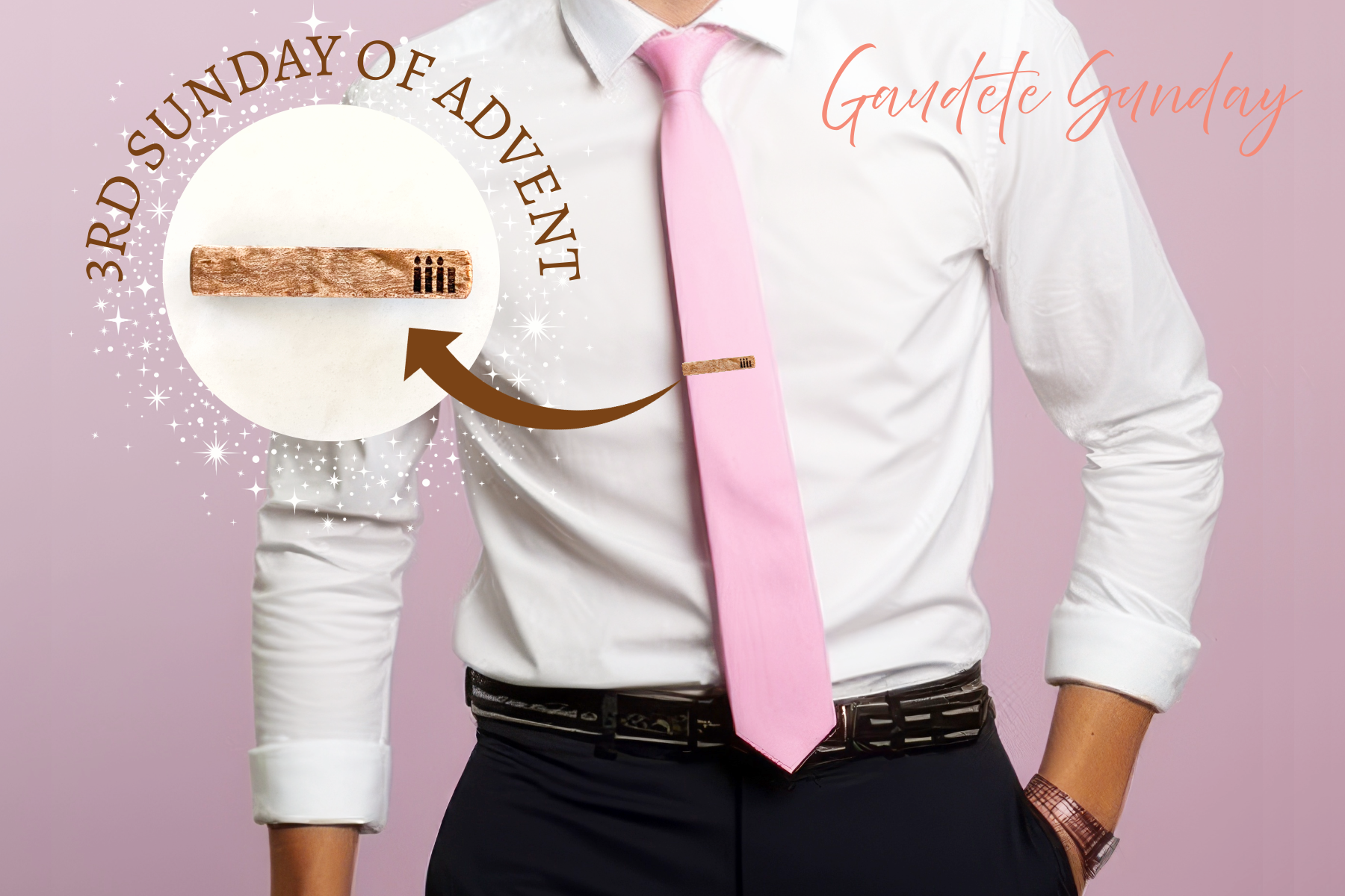 For the 1st through 4th weeks of Advent: Each tie bar is engraved with candles representing the 4 weeks of Advent. A new candle is “lit” each week to build anticipation for Christmas.